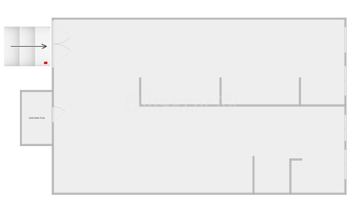 Prostor se sastoji od dvije sanitarne prostorije (WC-a) i jedne velike, otvorene prostorije koja se, uz minimalna ulaganja, može lako pregrađivati i prilagoditi različitim poslovnim namjenama – od uredskih prostora i radionica, do skladišta ili manjih proizvodnih pogona.