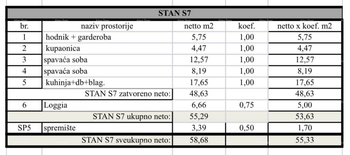 Stanu pripada spremište od 3.39 m2, kao i parkirno mjesto koji su uračunati u cijenu stana.