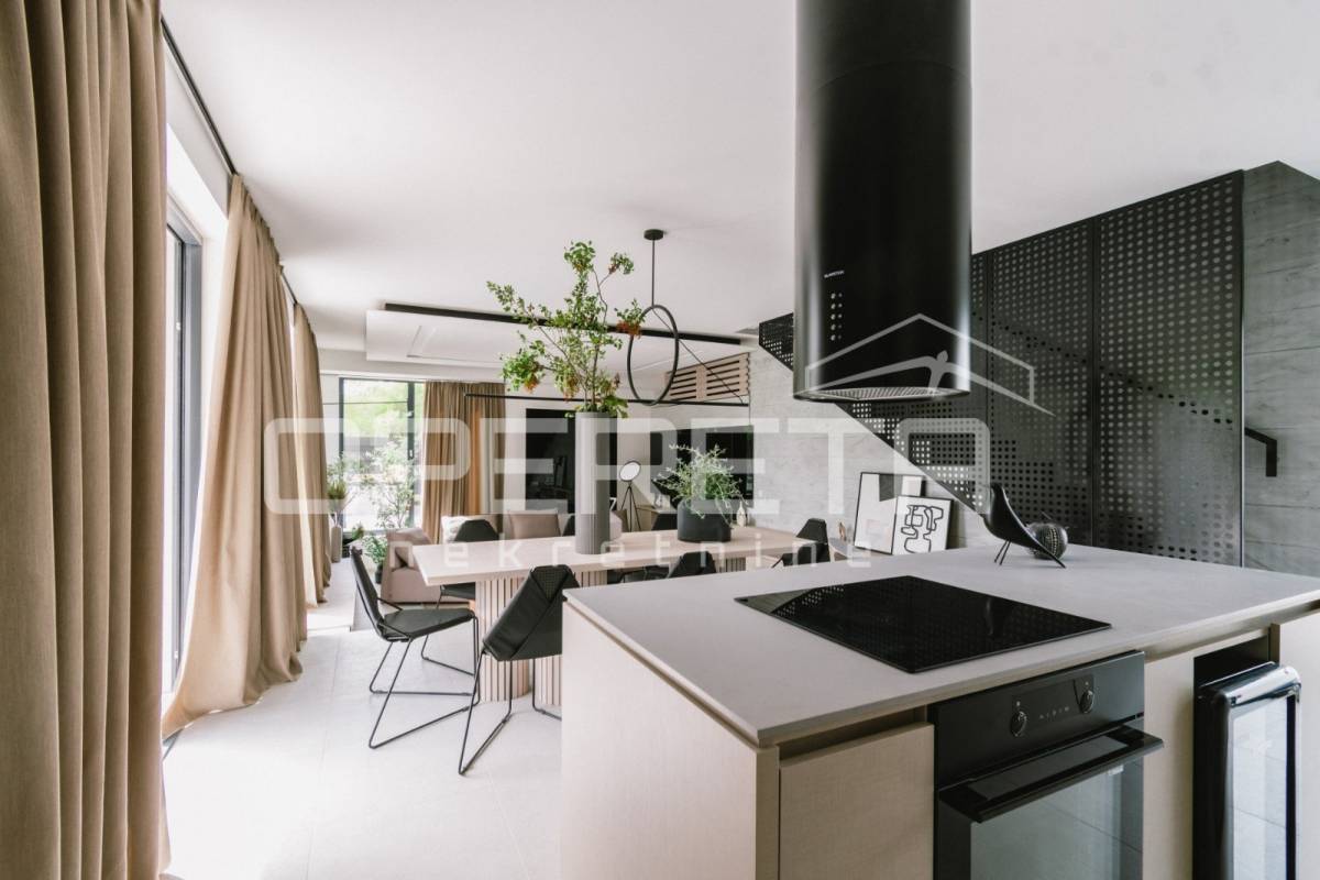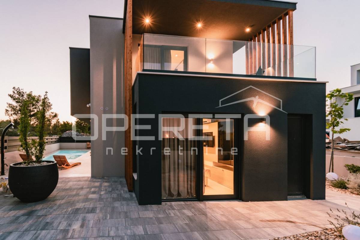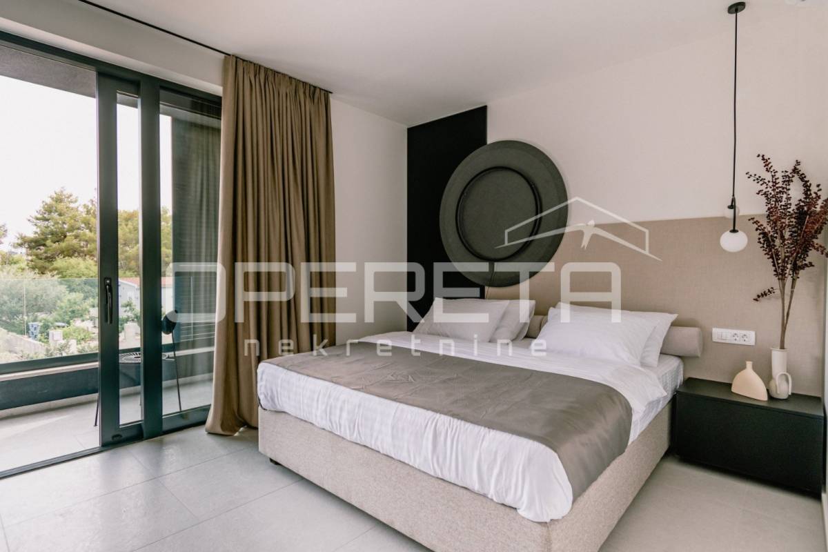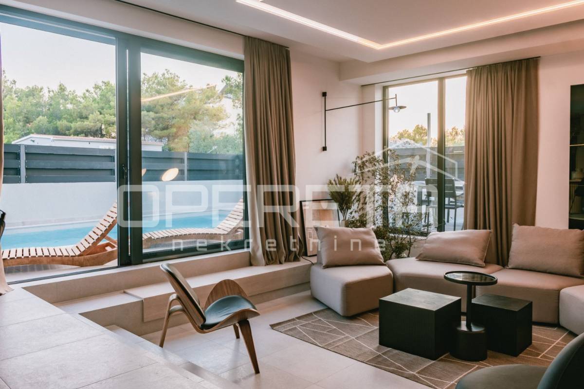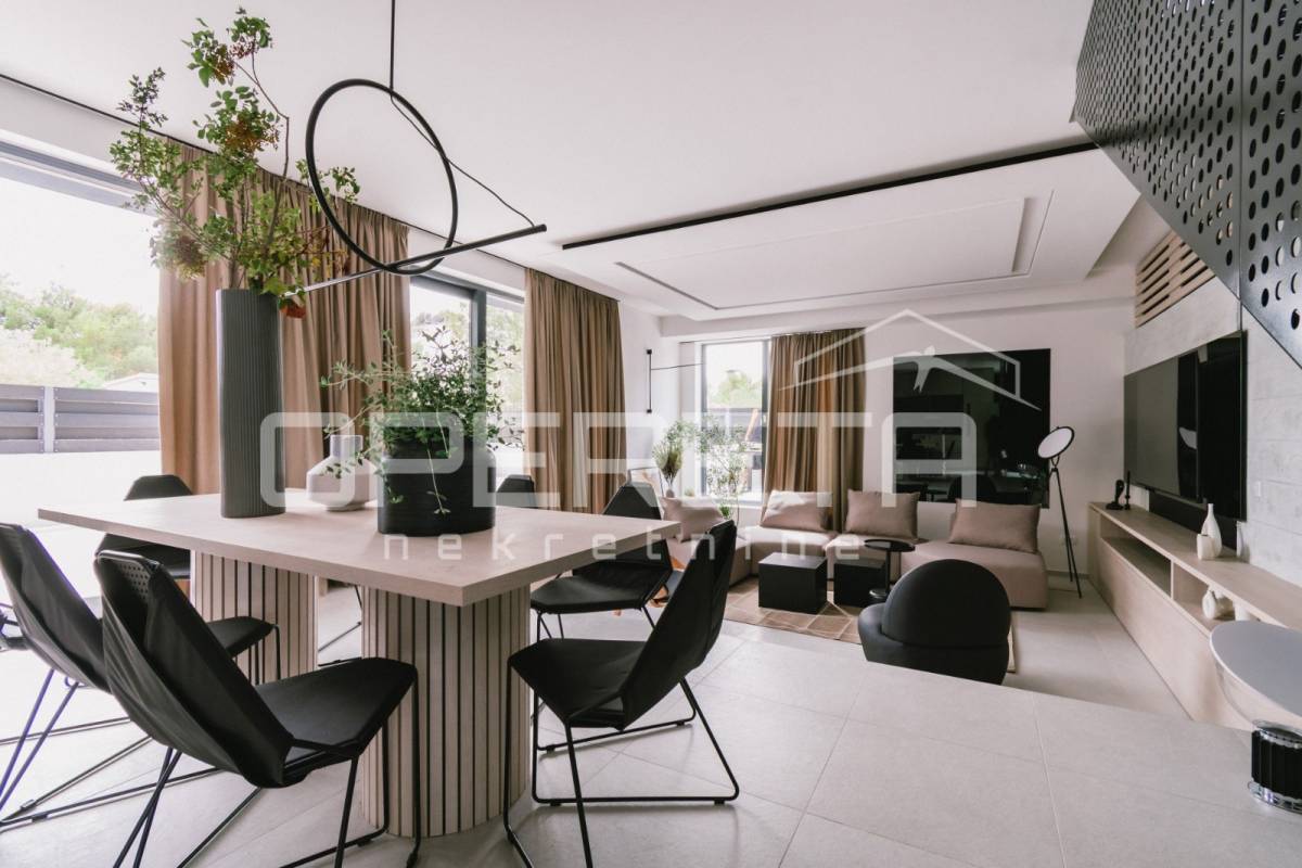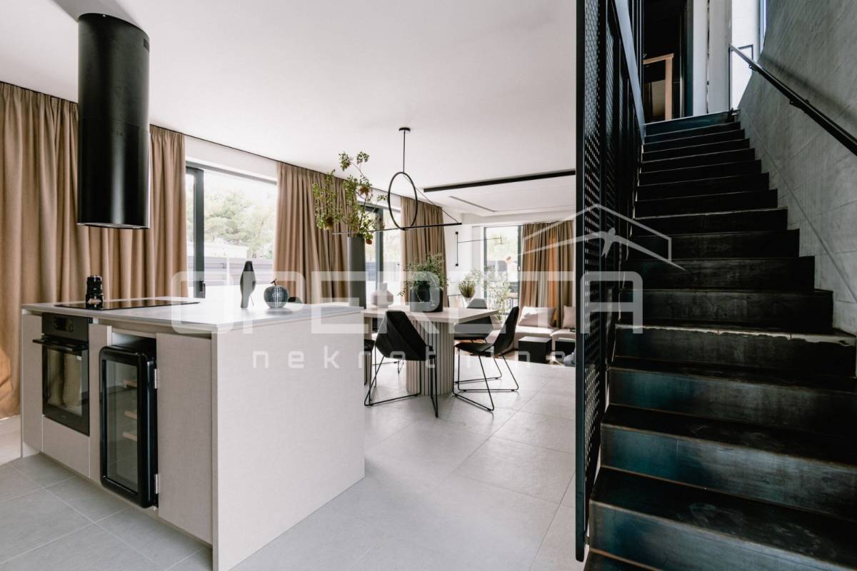 Projekt su oblikovali renomirani arhitekti i dizajneri interijera, a pažnja posvećena svakom detalju čini ovu kuću istinskim primjerom suvremene elegancije i promišljenog luksuza. Osim iznimne estetike, dodatnu vrijednost daje i mirna, ali iznimno atraktivna lokacija u Vodicama, idealna za one koji traže savršenu ravnotežu između privatnosti i blizine svih sadržaja.