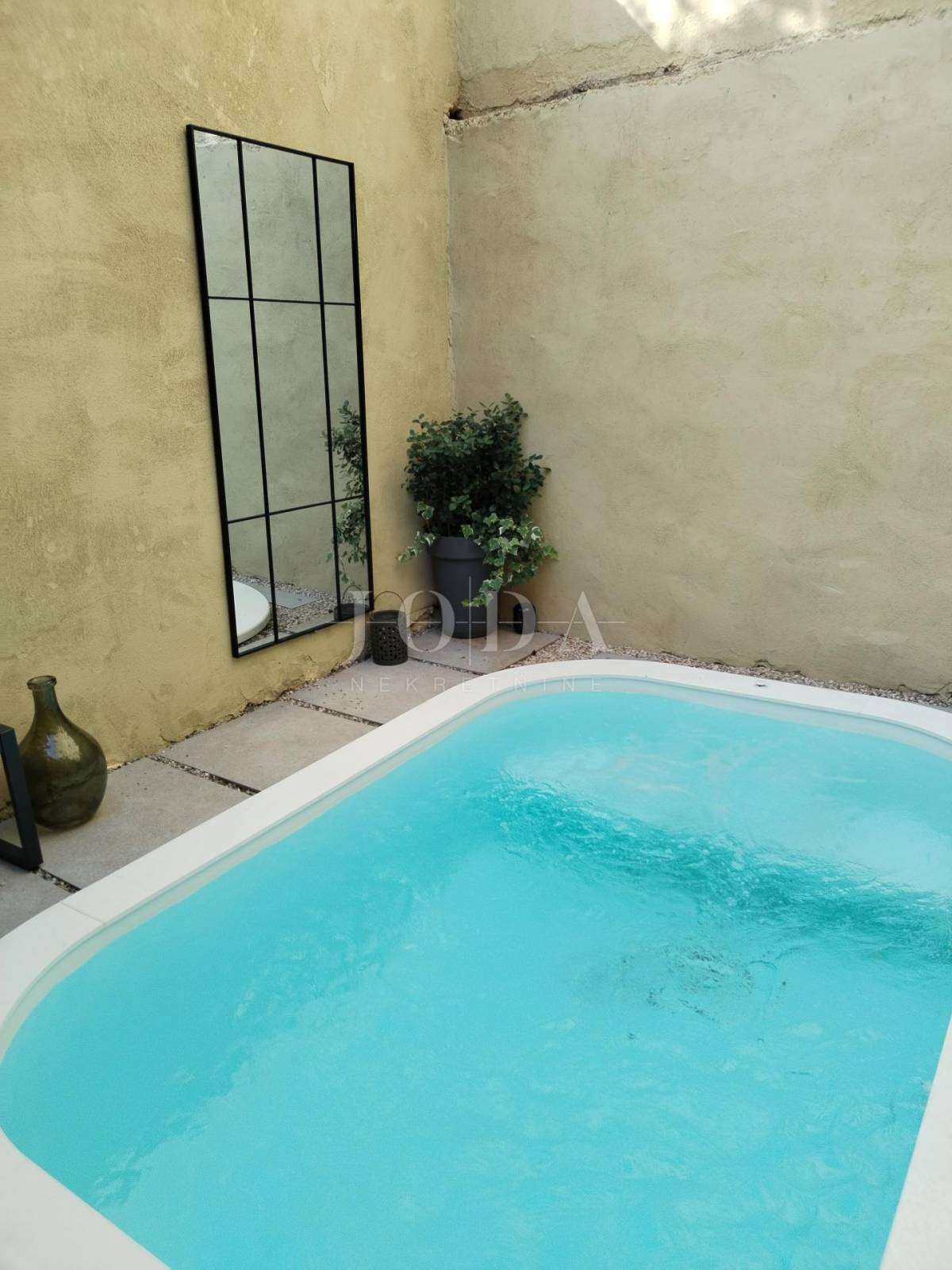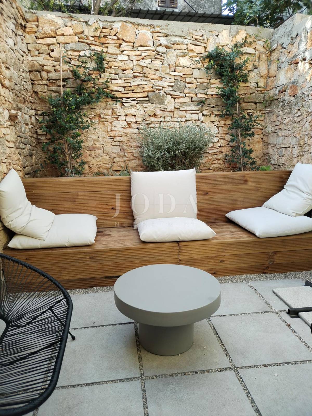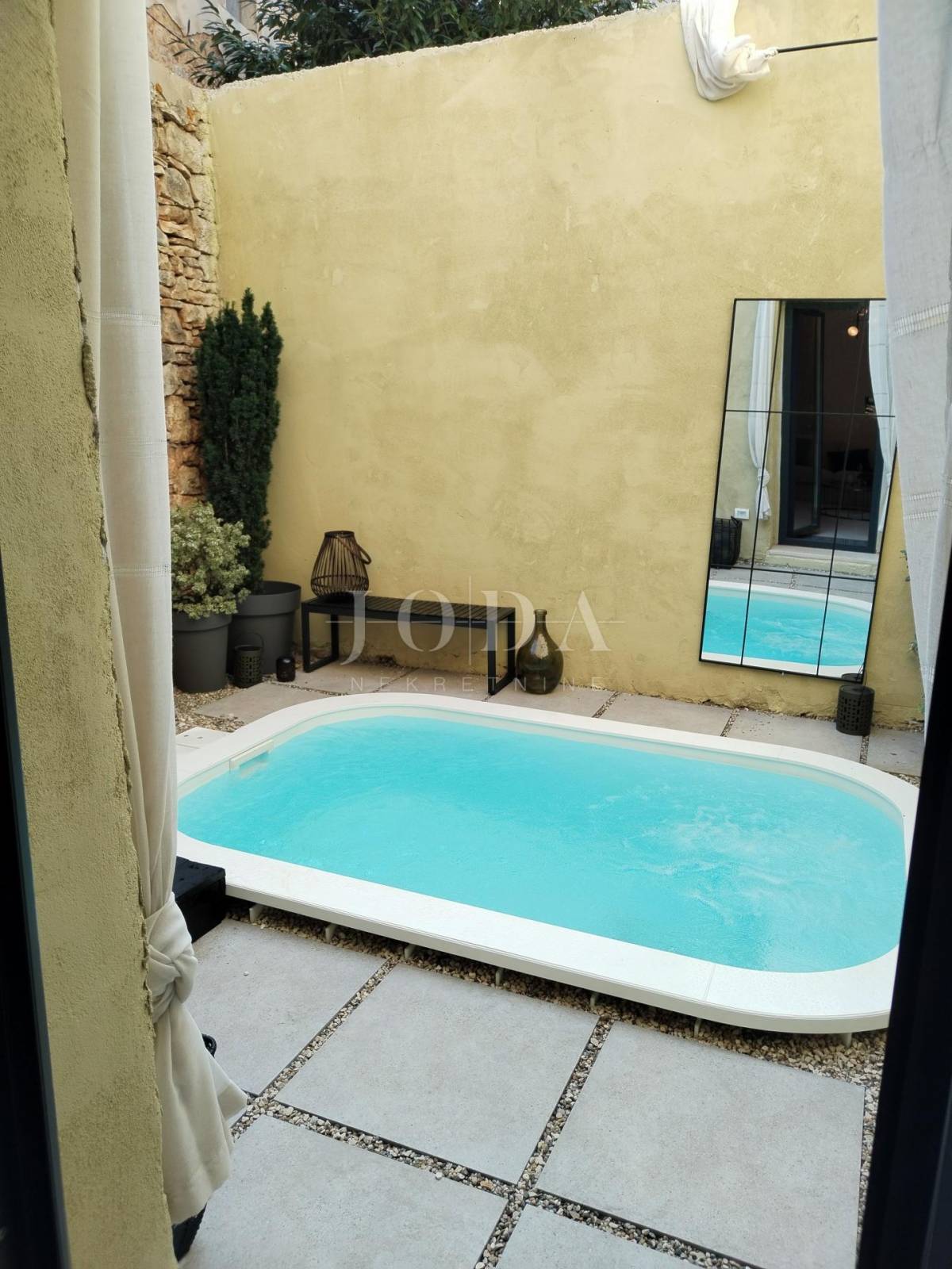 Iz dnevnog boravka i kuhinje izlazi se u dva mala vrta, od kojih jedan ima bazen za osvježenje u toplim ljetnim mjesecima.