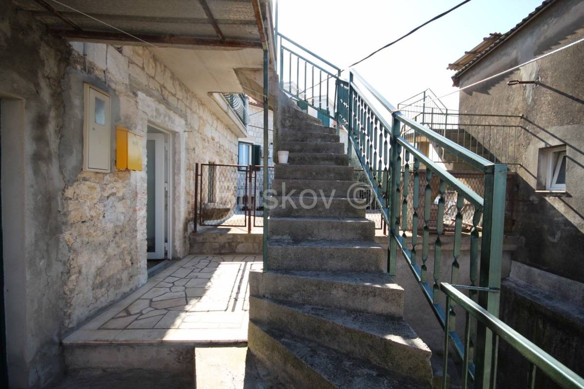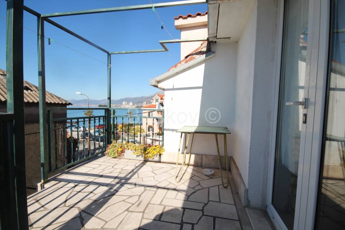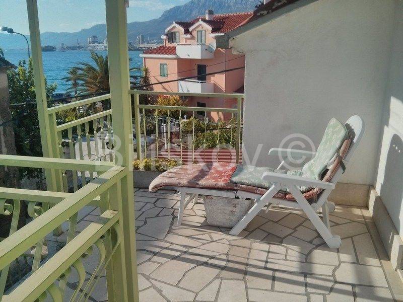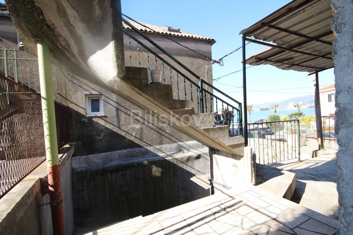 Vranjic, dvojna kuća na tri etaže ukupne stambene površine 82m2 s dvorištem površine 16m2 i dvije terase, smještena u drugom redu od mora. Vanjsko stubište vodi do svake etaže i oba stana na katu imaju terase s pogledom na more.