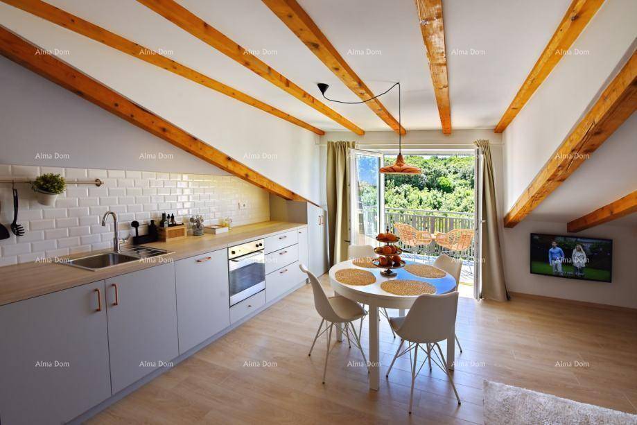 Oba stana raspolažu s dvije spavaće sobe, kuhinjom, dnevnim boravkom, kupaonicom i balkonom. Stan na trećem katu nalazi se u potkrovlju te pruža pogled na more.