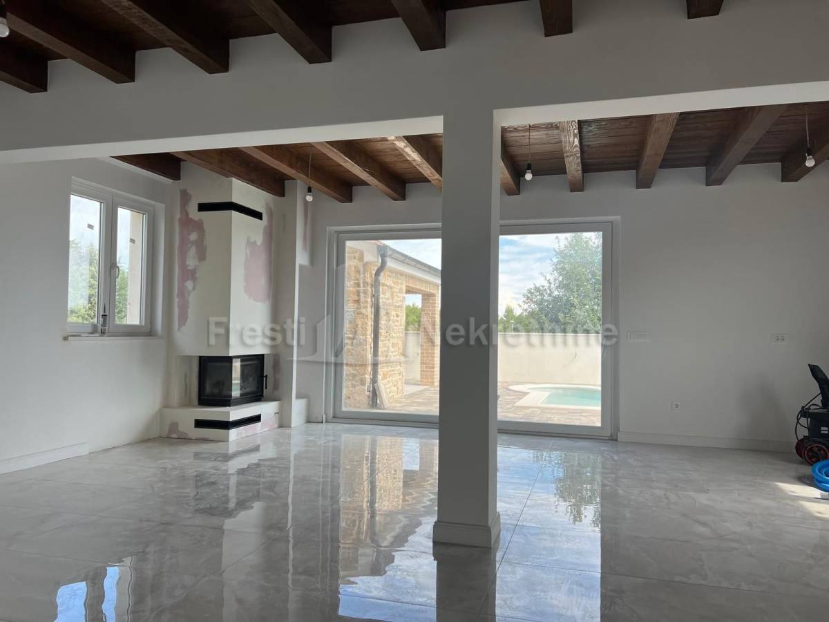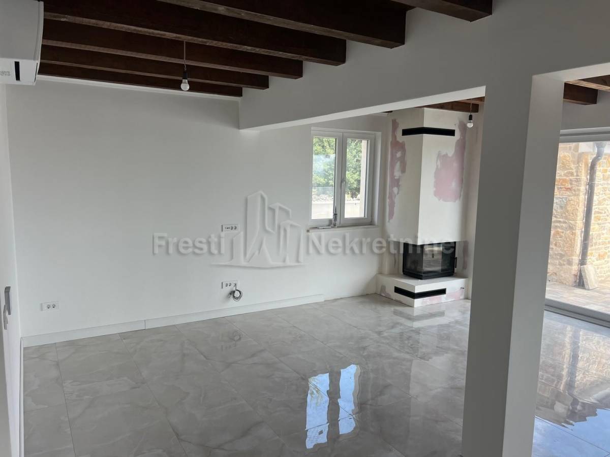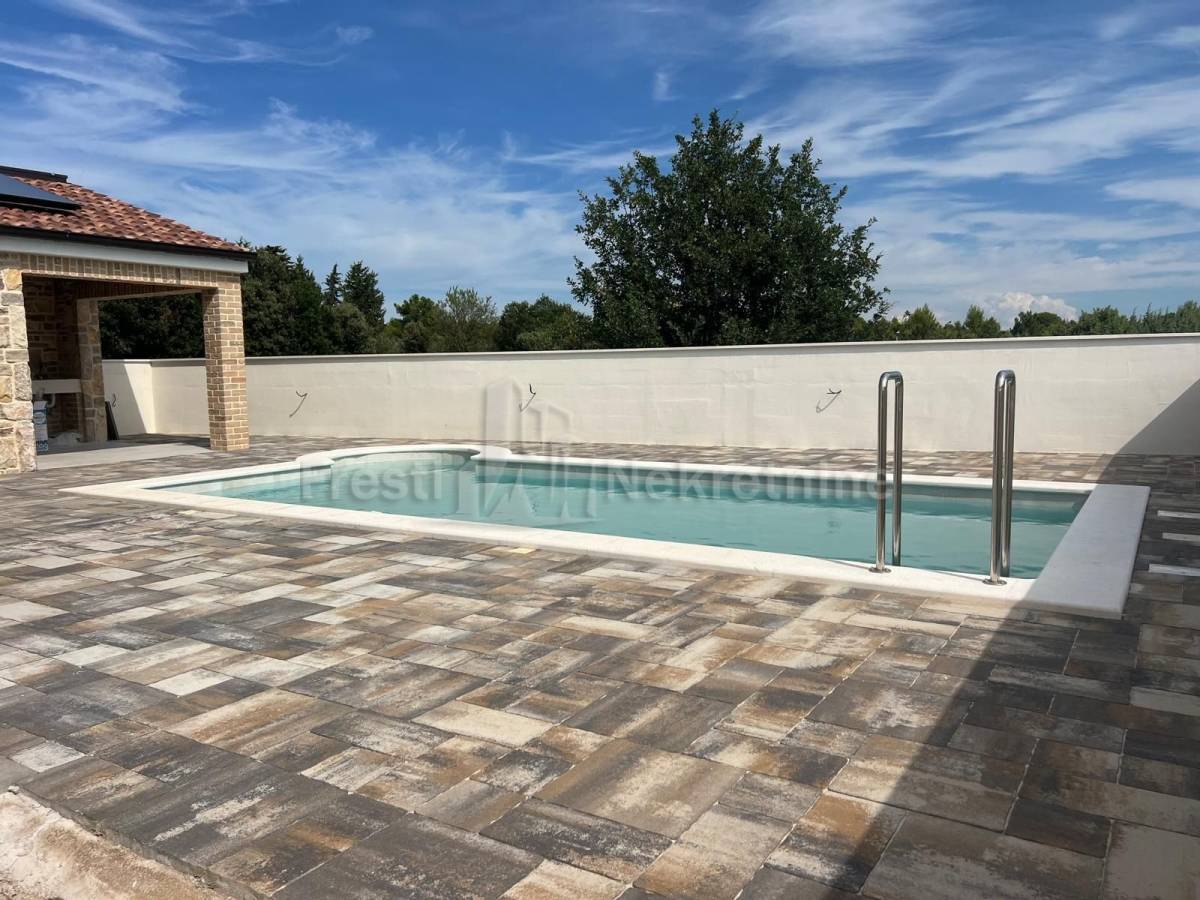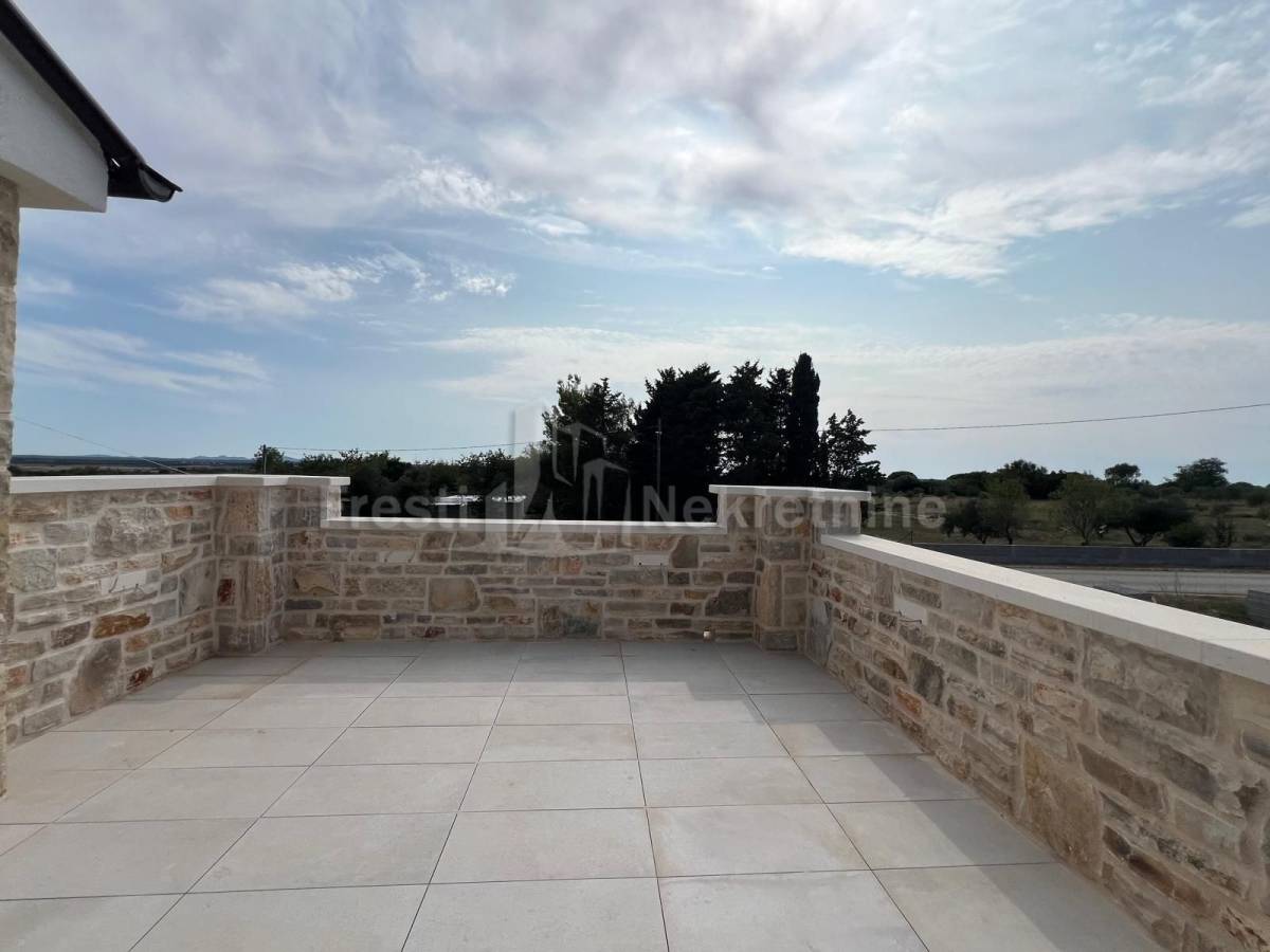 U mirnom naselju Vrsi pokraj Zadra na prodaju je prekrasna mediteranskog stila kamena kuća u novogradnji, površine 165m2. Kuća se sastoji od prizemlja i kata, u prizemlju pri ulazu vas dočekuje natkriveni trijem, ulazni dio u kući, jedna spavaća soba, kupaonica, prostrana “open-space” kuhinja s blagovaonicom i dnevnim boravkom koji vas kroz staklene stijene vodi u predivno prostrano dvorište sa bazenom. Kat kuće sastoji se od predsoblja, tri spavaće sobe , jedna od njih je glavna spavaća soba sa vlastitom kupaonicom i prostranom terasom te zajednička kupaonica. Grijanje kuće se provodi preko podnog grijanja na vodu, efikasna dizalica topline koja osigurava ugodnu temperaturu tijekom cijele godine, također ima i prekrasni komin koji stvara dodatnu ugodnu atmosferu i toplinu doma. Hlađenje se odvija preko multi-split sistema te se u svakoj prostoriji kuće. Alazi po jedna unutarnja jedinica klime. Kuća je visokokvalitetno građena te se zaista pazilo na svaki detalj kako bi se stvorio maksimalni ugođaj doma. Posebno se istice prekrasni prirodni kamen i drvo koji su se najvise koristili u gradnji Kuća se nalazi na parceli površine394m2, u kojem se pored kuće nalazi predivni grijani bazen putem dizalice topline sa jacuzzi-em površine 25.80m2, 8x4m, te pomoćni objekt sa ljetnom kuhinjom i roštiljem te strojarnica od bazena, na objektu se nalaze solarni paneli koji osiguravaju grijanu vodu u cijeloj kući. Parkirno mjesto za tri auta sa stanicam za punjene električnih auta. Kompletna kuća je toplinski izolirana sa Eps-om i kamenom oblogom. Stolarija je pvc sa mediteranskim stilom plavim alu griljama. Cijeli objekt je pod video nadzorom.