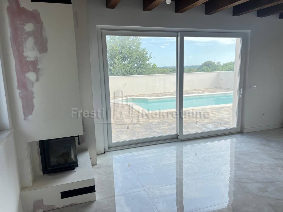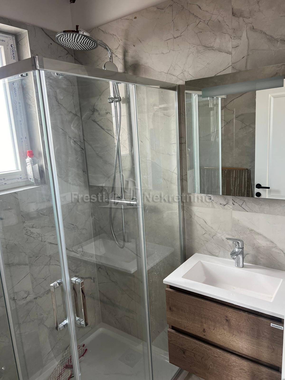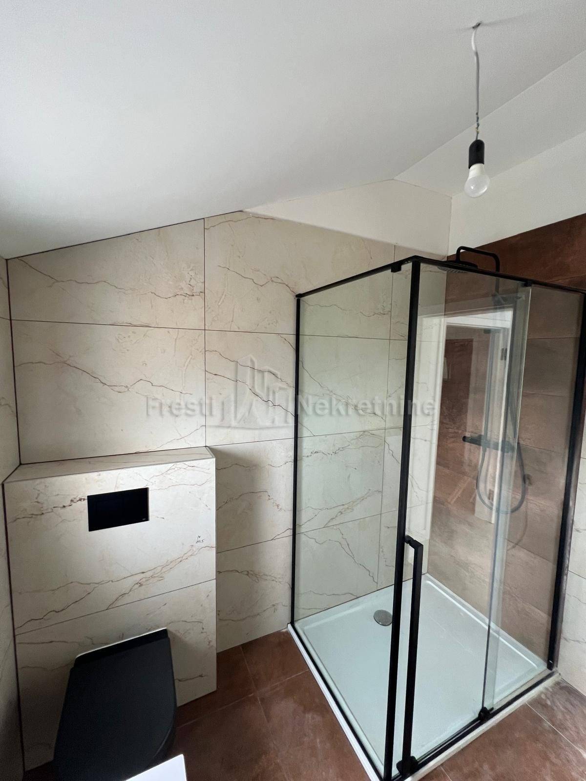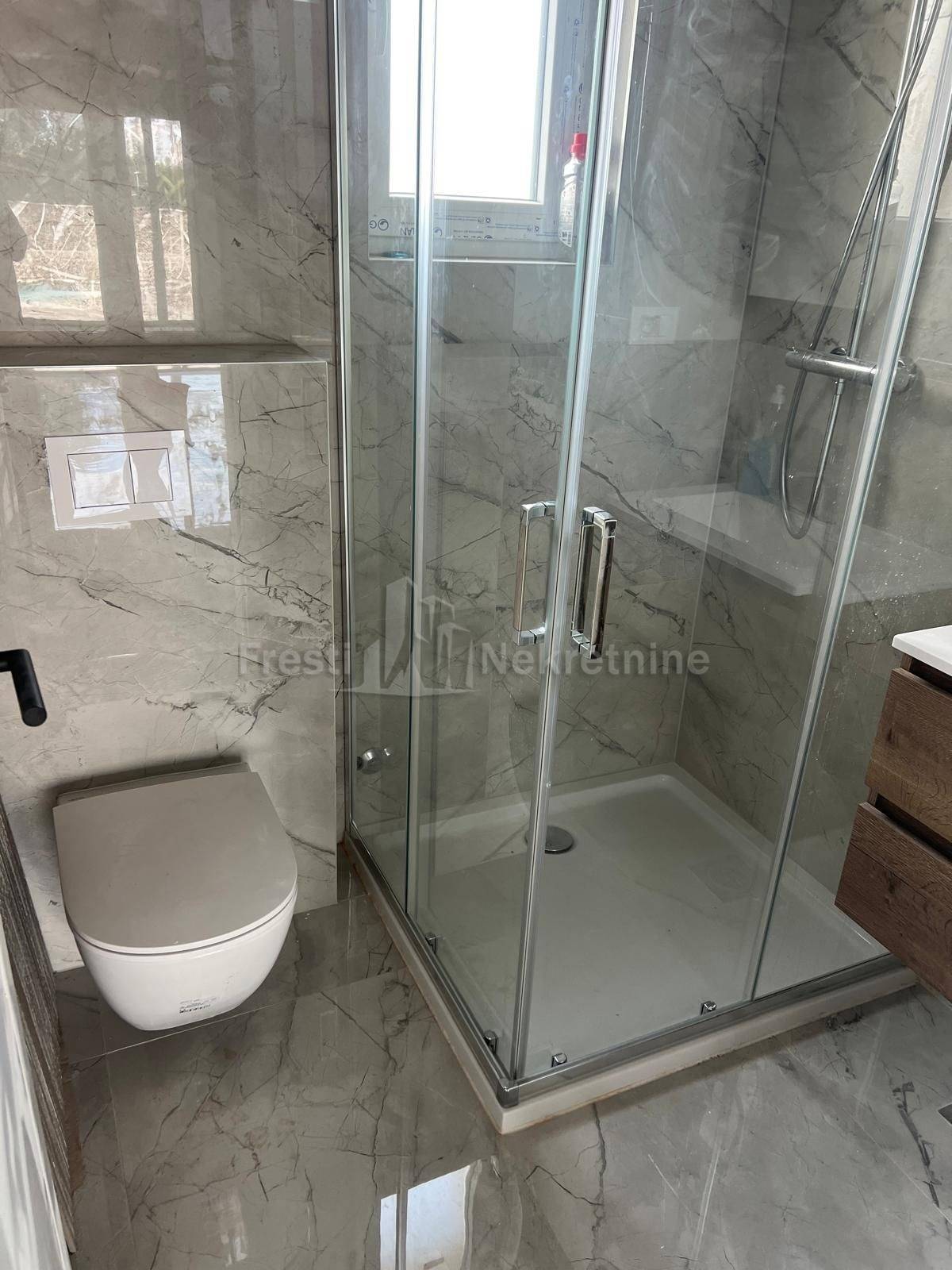 U mirnom naselju Vrsi pokraj Zadra na prodaju je prekrasna mediteranskog stila kamena kuća u novogradnji, površine 165m2. Kuća se sastoji od prizemlja i kata, u prizemlju pri ulazu vas dočekuje natkriveni trijem, ulazni dio u kući, jedna spavaća soba, kupaonica, prostrana “open-space” kuhinja s blagovaonicom i dnevnim boravkom koji vas kroz staklene stijene vodi u predivno prostrano dvorište sa bazenom. Kat kuće sastoji se od predsoblja, tri spavaće sobe , jedna od njih je glavna spavaća soba sa vlastitom kupaonicom i prostranom terasom te zajednička kupaonica. Grijanje kuće se provodi preko podnog grijanja na vodu, efikasna dizalica topline koja osigurava ugodnu temperaturu tijekom cijele godine, također ima i prekrasni komin koji stvara dodatnu ugodnu atmosferu i toplinu doma. Hlađenje se odvija preko multi-split sistema te se u svakoj prostoriji kuće. Alazi po jedna unutarnja jedinica klime. Kuća je visokokvalitetno građena te se zaista pazilo na svaki detalj kako bi se stvorio maksimalni ugođaj doma. Posebno se istice prekrasni prirodni kamen i drvo koji su se najvise koristili u gradnji Kuća se nalazi na parceli površine394m2, u kojem se pored kuće nalazi predivni grijani bazen putem dizalice topline sa jacuzzi-em površine 25.80m2, 8x4m, te pomoćni objekt sa ljetnom kuhinjom i roštiljem te strojarnica od bazena, na objektu se nalaze solarni paneli koji osiguravaju grijanu vodu u cijeloj kući. Parkirno mjesto za tri auta sa stanicam za punjene električnih auta. Kompletna kuća je toplinski izolirana sa Eps-om i kamenom oblogom. Stolarija je pvc sa mediteranskim stilom plavim alu griljama. Cijeli objekt je pod video nadzorom.
