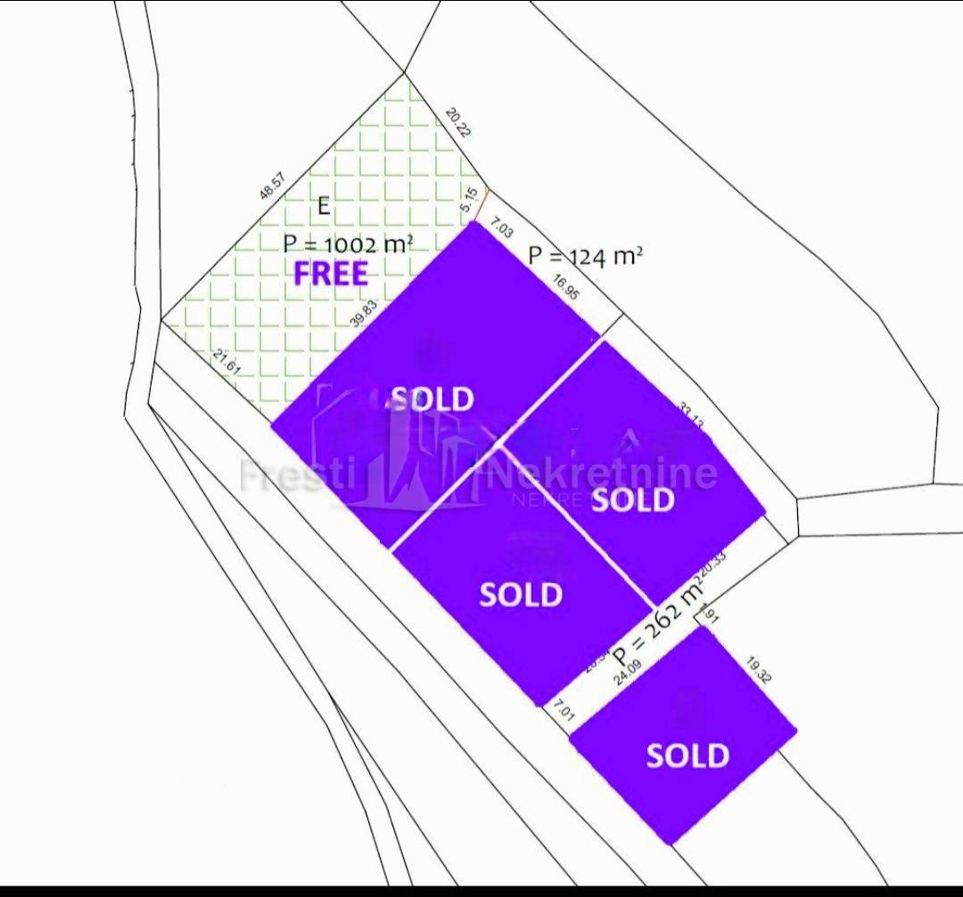 Prodaje se atraktivno građevinsko zemljište površine 1002 m2, pravilnog pravokutnog oblika s pristupnim putem širine 5 metara. Približnih je dimenzija 21 (uz put) x 44 metra.Parcela je zemljana, očišćena tj. raskrčena.Uz parcelu se prodaje polovica pristupnog puta. Ukupna pov. puta iznosi 124 m2.Najbliže kuće se nalaze oko 100-150 metara od parcele.Cijena parcele: 110,00 eura/m2.