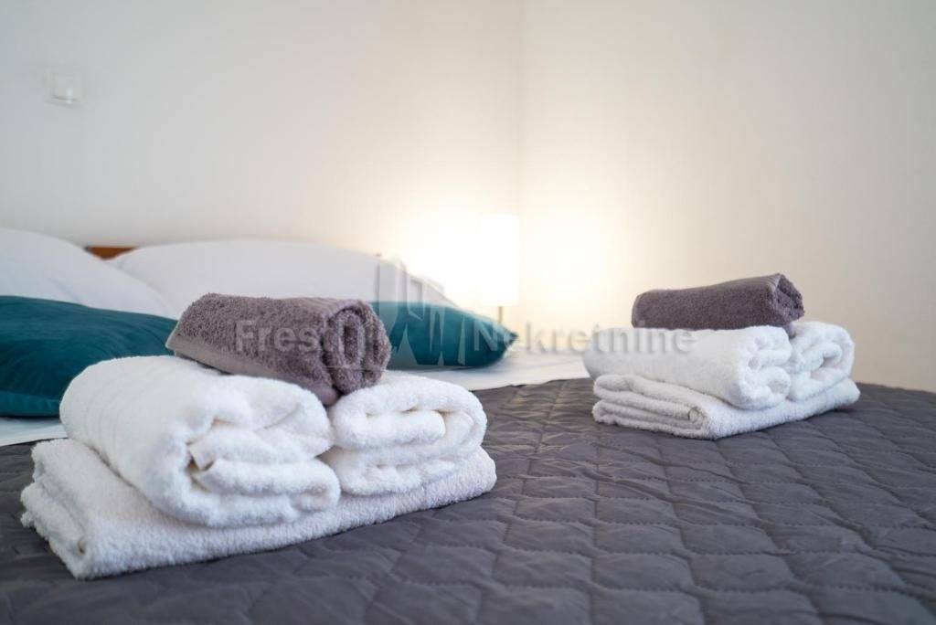 Prodaje se komforan, jako lijepo namješten stan na atraktivnoj lokaciji Jazine, Zadar. Stan se prostire na 86 m² stambenog prostora i 141m2 okućnice. Nudi savršen spoj udobnosti i funkcionalnosti. Sastoji se od prostranog otvorenog dnevnog boravka s blagovaonicom i moderno opremljene kuhinje, dvije udobne spavaće sobe, dvije kupaonice s kadom, tušem i toaletom, prostranog hodnika, opreme za roštilj i terase. Stan je kompletno opremljen kvalitetnim uređajima . Sve instalacije (struja, voda) su nove. Visokokvalitetni materijali koriste se u cijelom stanu, odlični prozori i vrata.