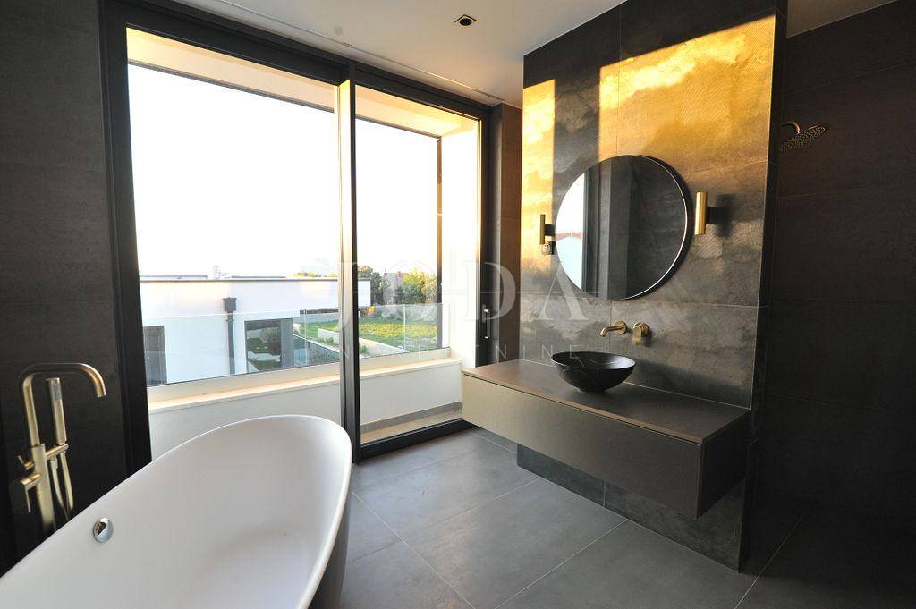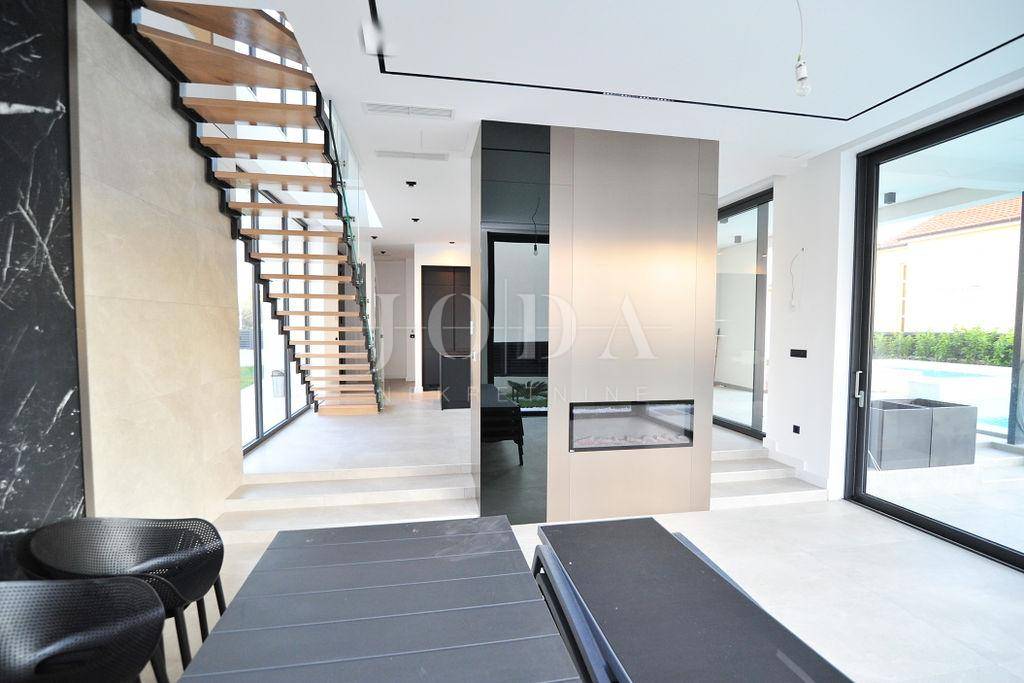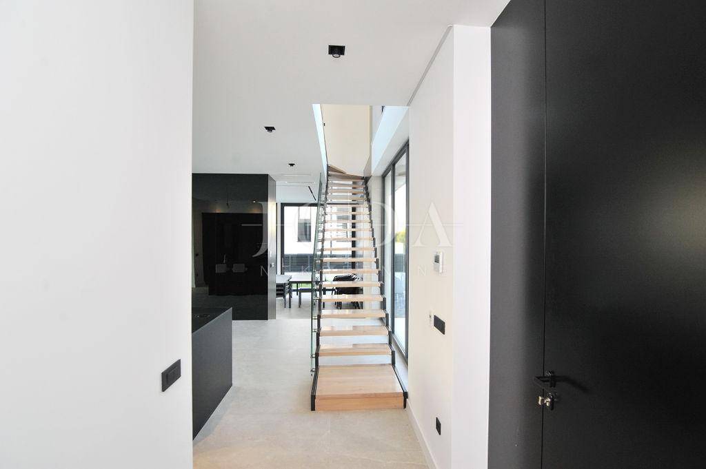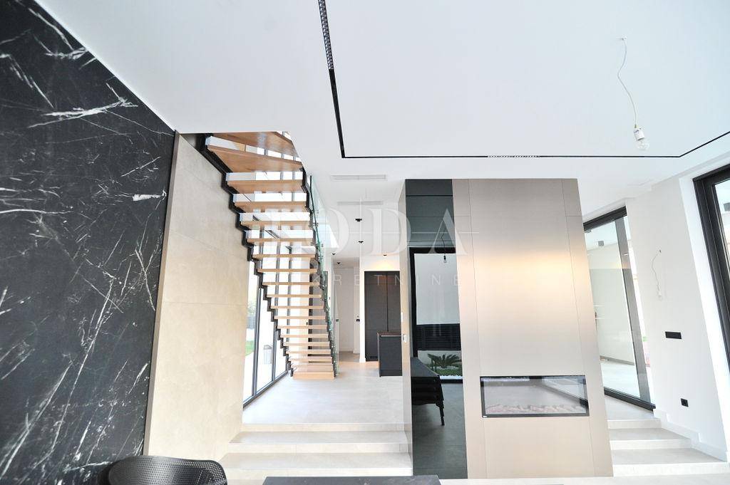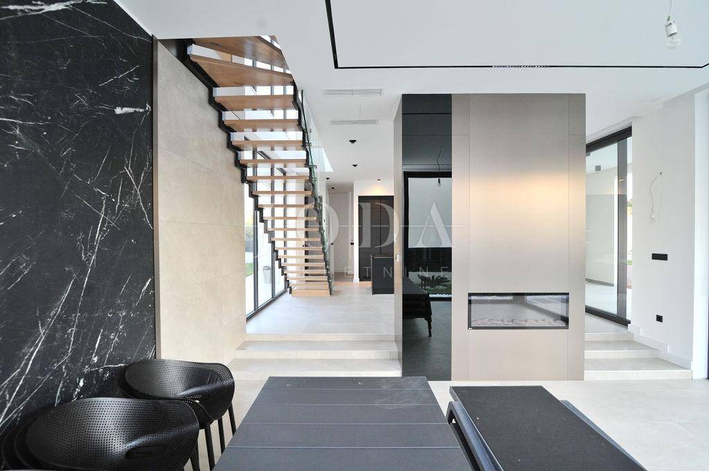 Visina stropa kao i vanjska te unutarnja stolarija je nešto što privlači pažnju i daje dodatni dašak luksuza ovoj nekretnini.Vila je građena po principu pametne kuće,kompletno je sa podnim grijanjem,hlađenjem,alarmnim sustavom,video nadzorom...