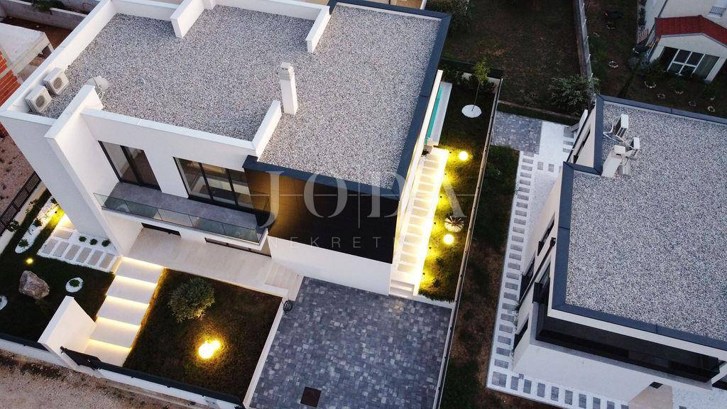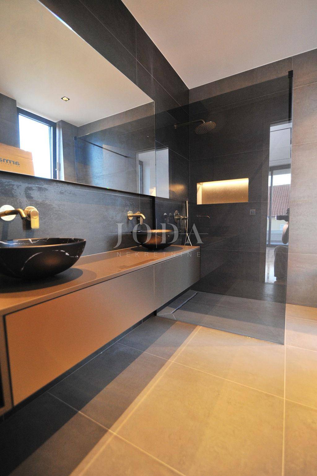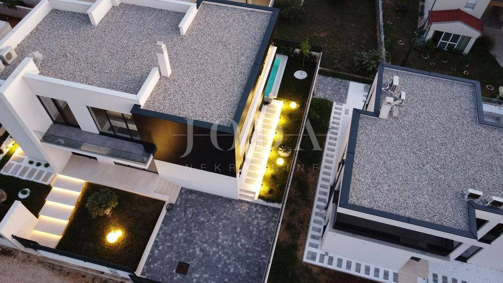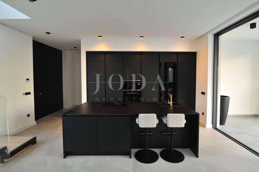 Visina stropa kao i vanjska te unutarnja stolarija je nešto što privlači pažnju i daje dodatni dašak luksuza ovoj nekretnini.Vila je građena po principu pametne kuće,kompletno je sa podnim grijanjem,hlađenjem,alarmnim sustavom,video nadzorom...