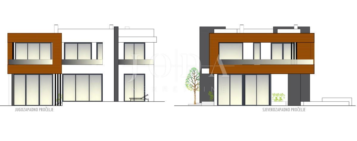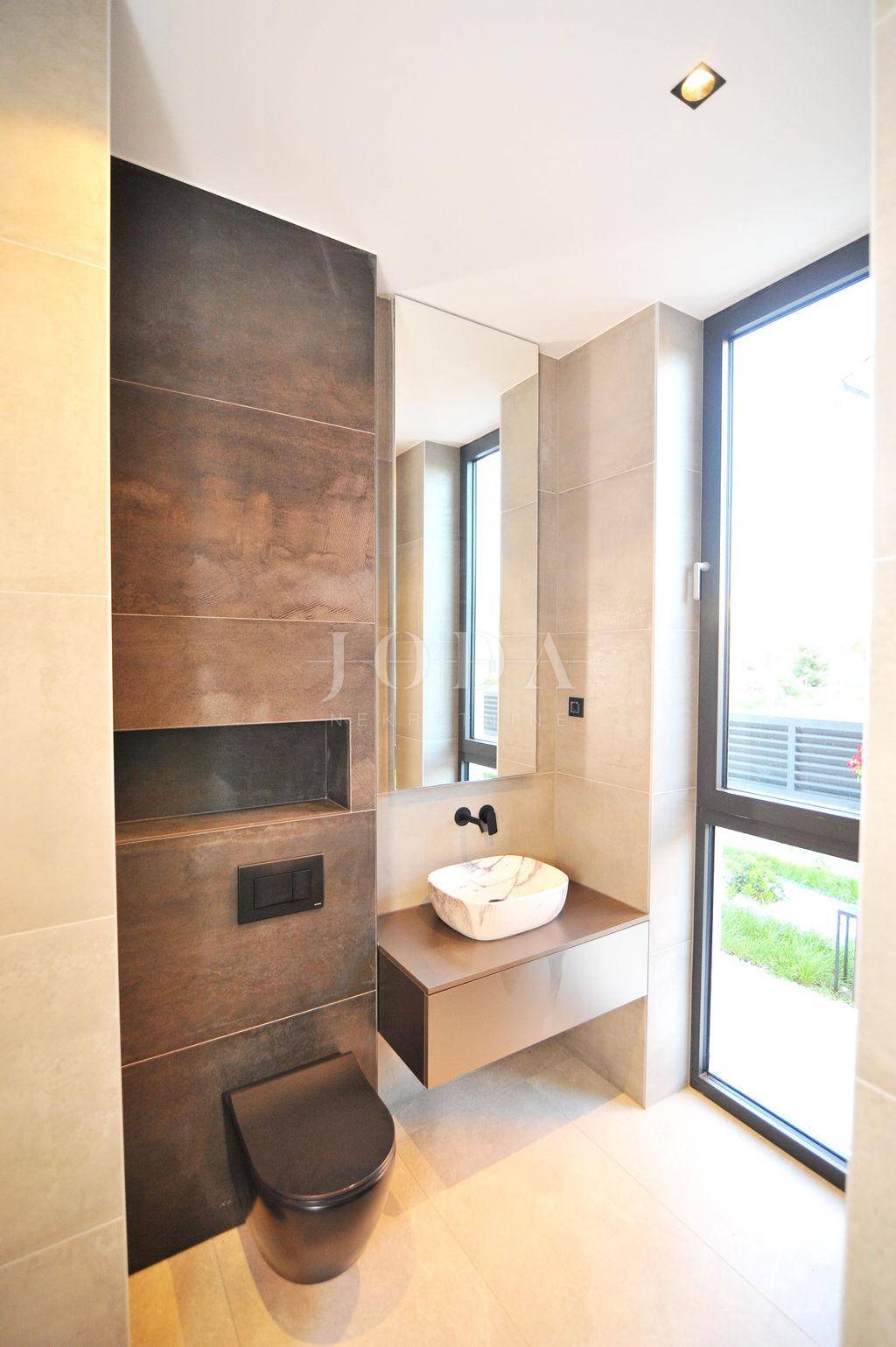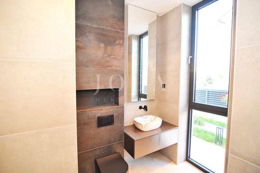 Građena po najvišim standardima struke sa visokokvalitetnom završnom obradom i matrerijalima interijera i eksterijera.Smještena unutar ograđene,ozelenjene okućnice sa popločanim terasama.