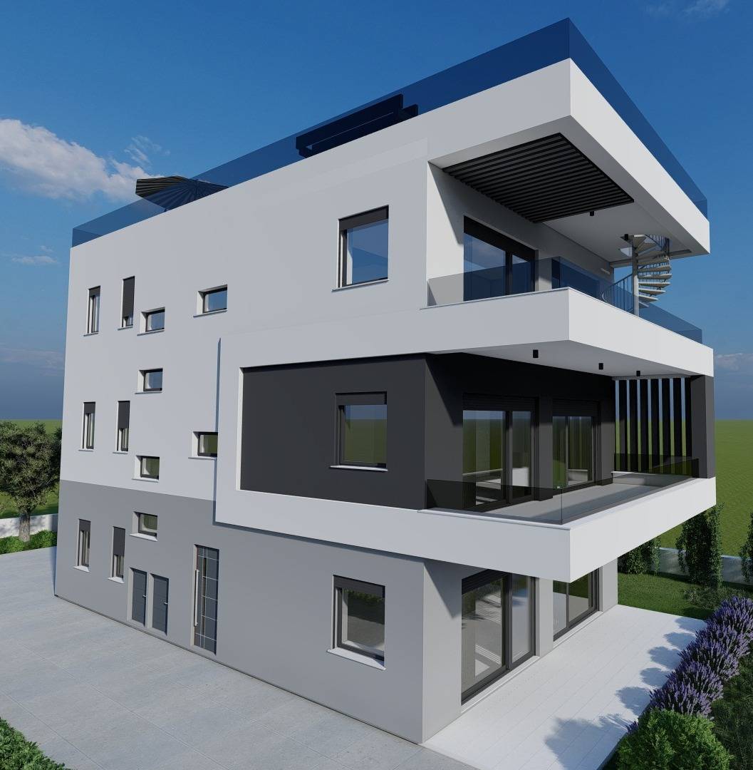 Teren u prvom redu do mora sa pravomoćnom građevinskom dozvolom za izgradnju objekta sa slike.