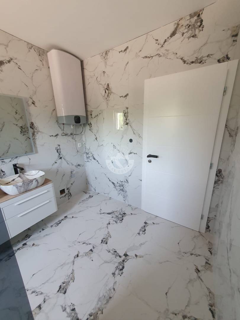 - Na podovima u kuhinji, dnevnom boravku i terasi stavljene su keramičke pločice ( I klasa ) dok su u spavaćim sobama na podovima SPC podne obloge.