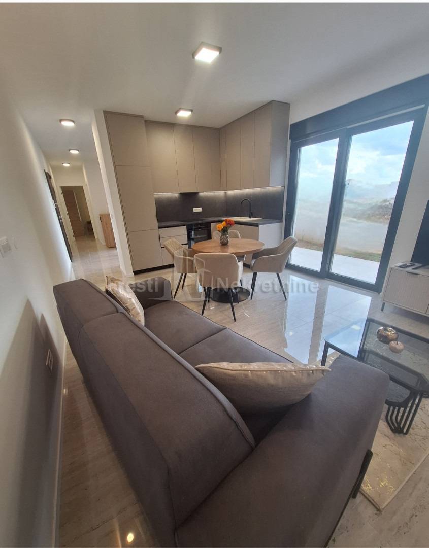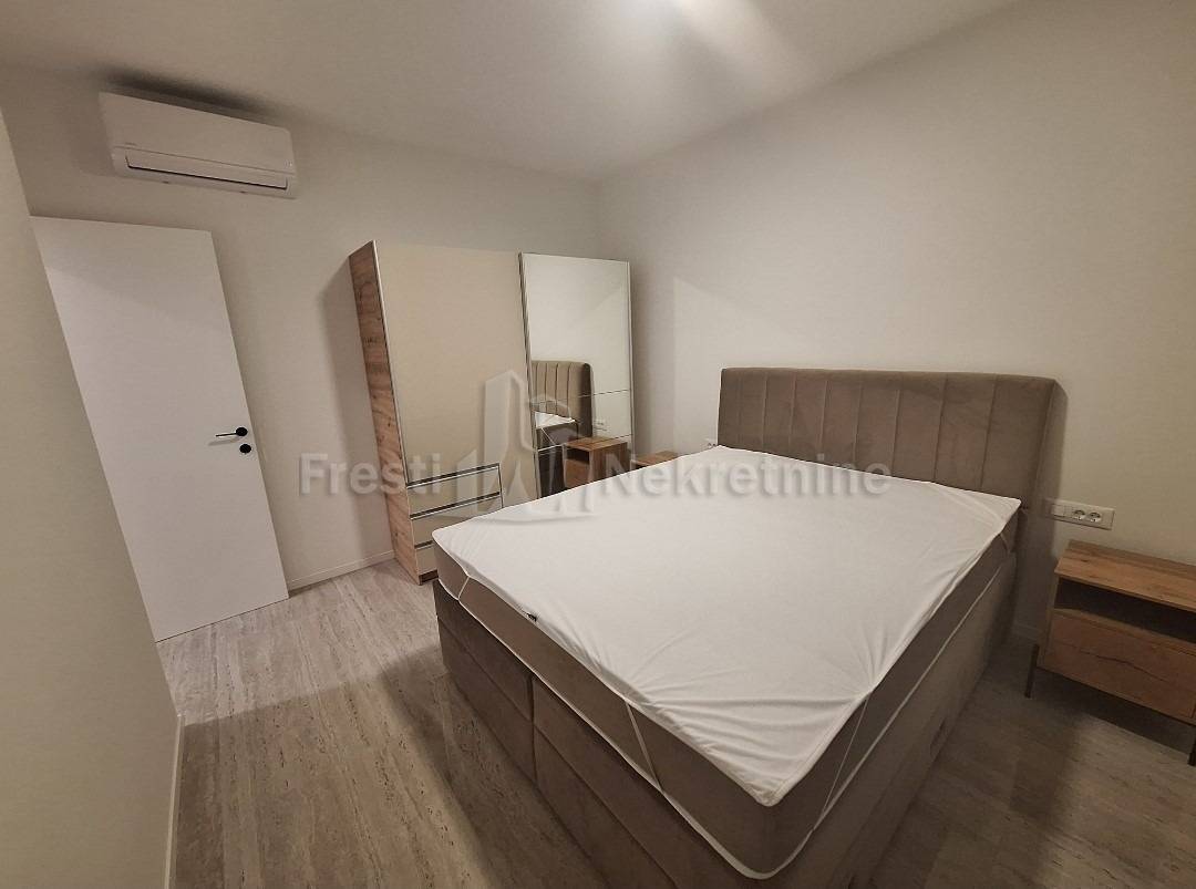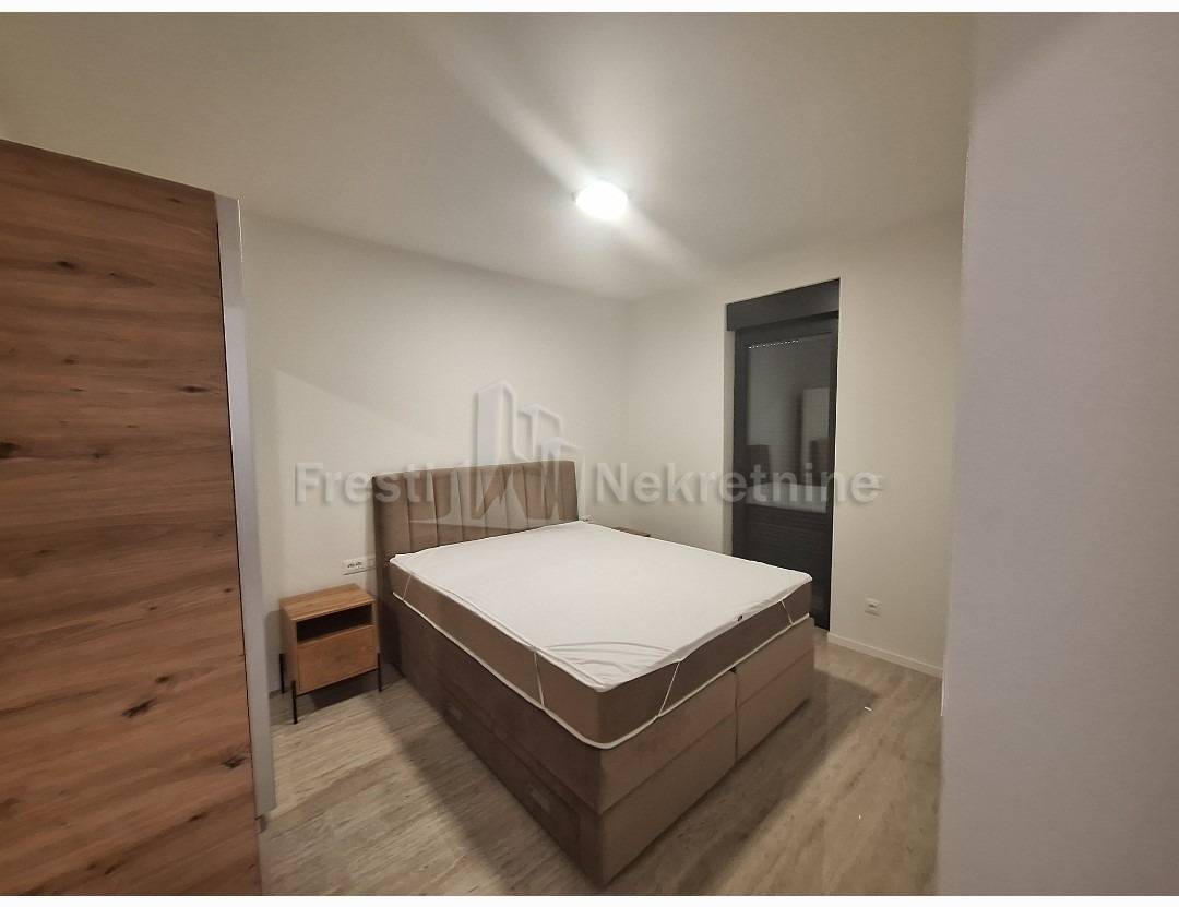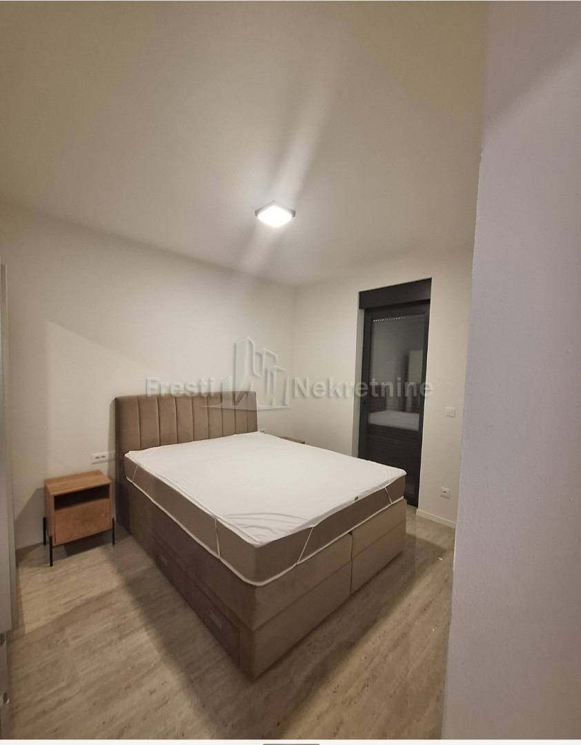 Tip: jednosoban, luksuzan, novogradnja, novoopremljen — 1 spavaća soba + dnevni boravak otvoren prema kuhinji i blagovaonici sa izlaskom na terasu s loggiom i nenatkrivenom terasom s vrtomProstran hodnikKupaonica: moderna, kompletno opremljenaTerasa: privatna, ozelenjena — mirna oaza za jutarnju kavu i ugodan odmorUdobnost: klima-uređaj i podno grijanje (za ugodne zimske večeri)Režije: posebno se plaćajuDostupnost: OdmahCijena: 1000 € / mjesečno (režije nisu uključene)