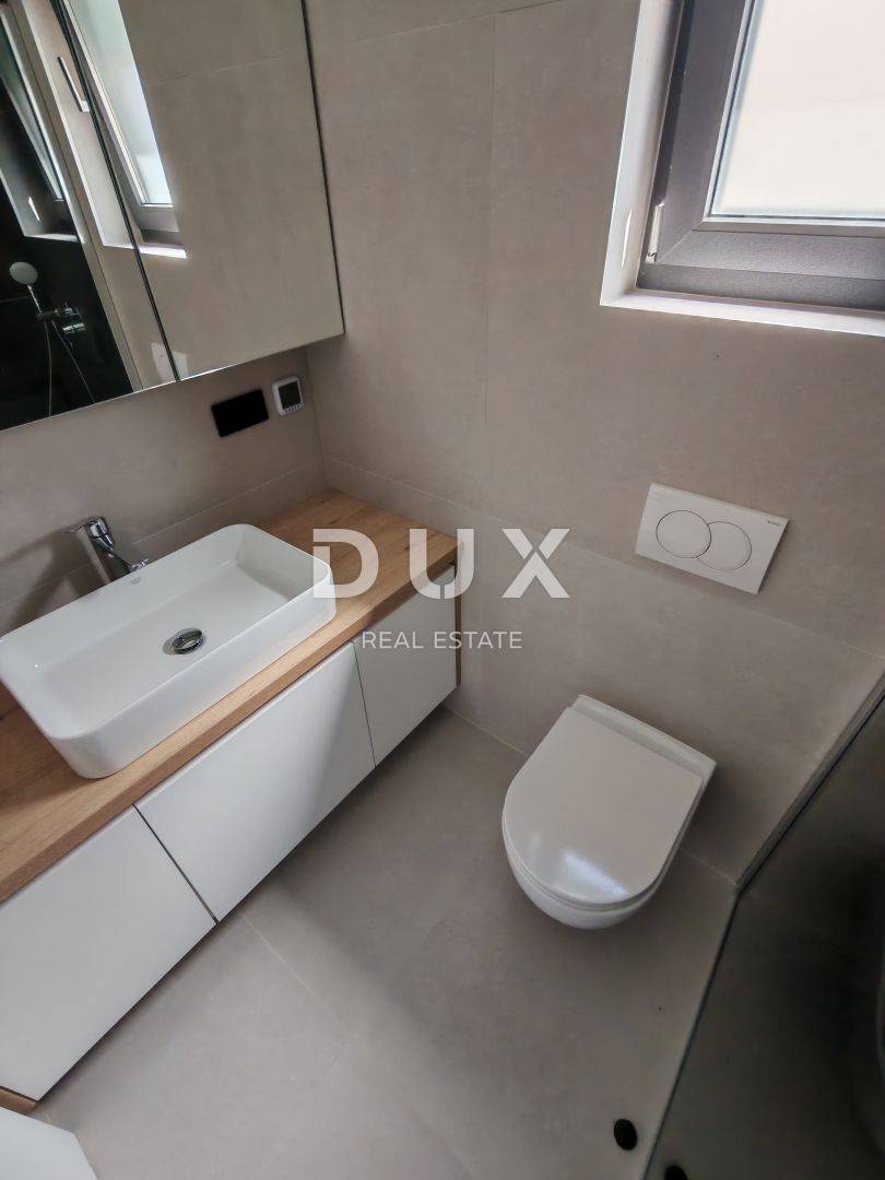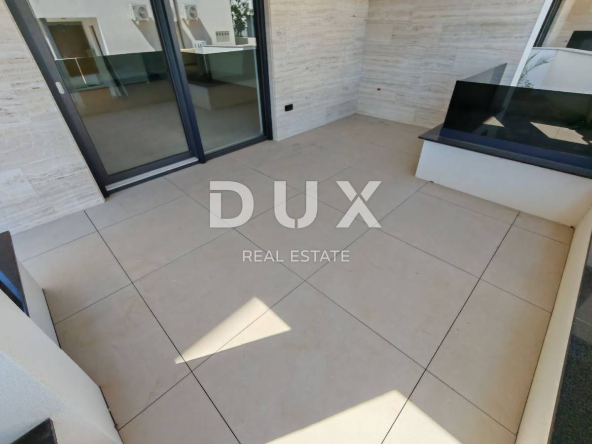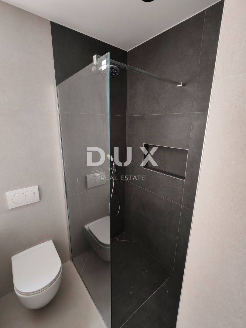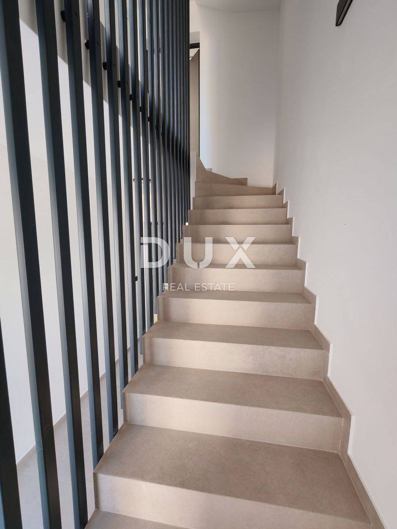 Posebna pažnja posvećena je kvaliteti gradnje i završnim detaljima. Tu su vrhunska antracit plastična stolarija s troslojnim staklom, električne rolete, komarnici, kao i premium aluminijska ulazna vrata u zgradu. Fasada je izolirana s 10 cm stiropora, dok su terase obložene elegantnim kamenom travertinom. Crna ograda od dvoslojnog kaljenog stakla, ručno rađena unutarnja stolarija, keramika vrhunske kvalitete dimenzija 90 × 90 cm u cijelom apartmanu, te luksuzni kupaonski elementi marke Geberit, Grohe i Aquaestil, osiguravaju vrhunski standard života.