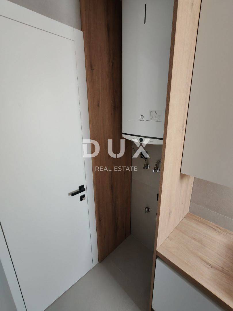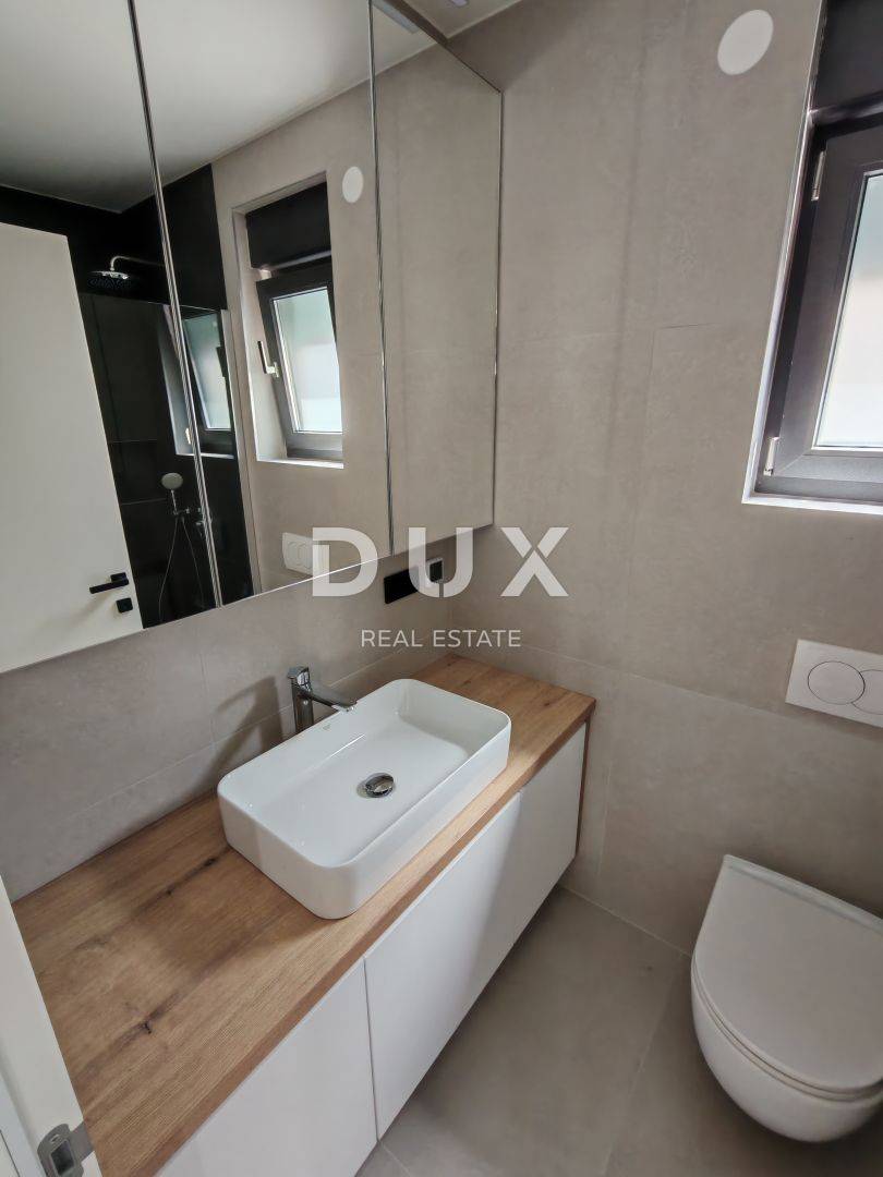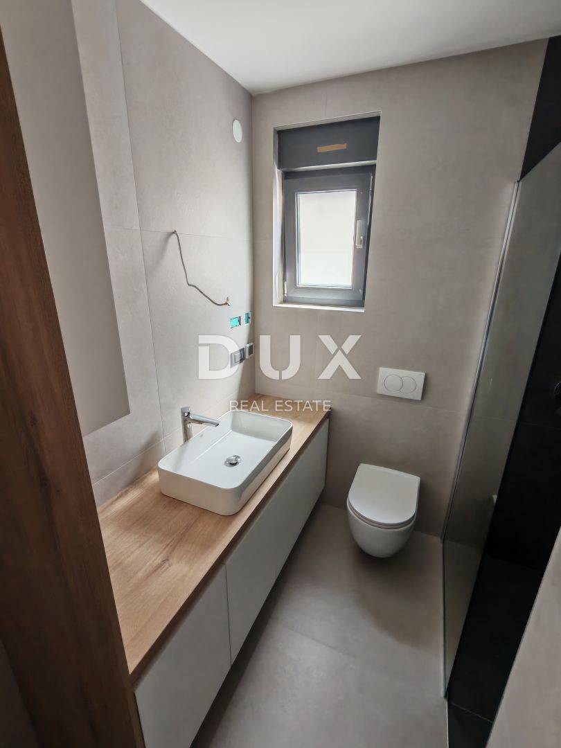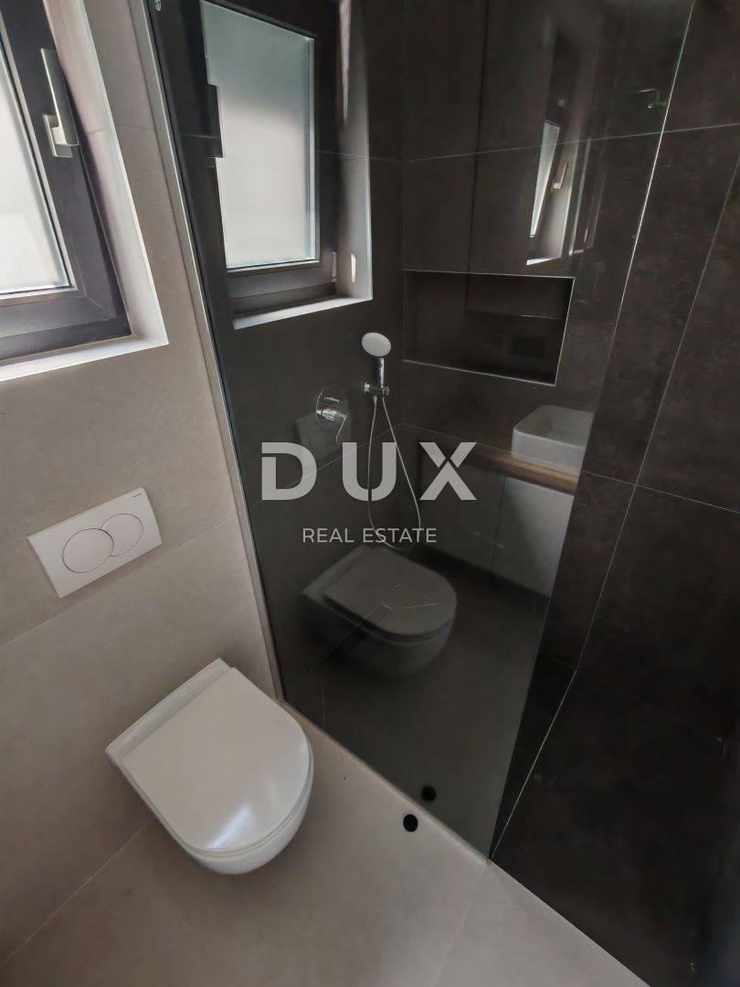 Posebna pažnja posvećena je kvaliteti gradnje i završnim detaljima. Tu su vrhunska antracit plastična stolarija s troslojnim staklom, električne rolete, komarnici, kao i premium aluminijska ulazna vrata u zgradu. Fasada je izolirana s 10 cm stiropora, dok su terase obložene elegantnim kamenom travertinom. Crna ograda od dvoslojnog kaljenog stakla, ručno rađena unutarnja stolarija, keramika vrhunske kvalitete dimenzija 90 × 90 cm u cijelom apartmanu, te luksuzni kupaonski elementi marke Geberit, Grohe i Aquaestil, osiguravaju vrhunski standard života.