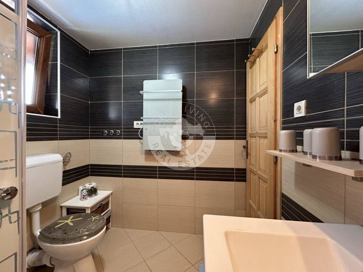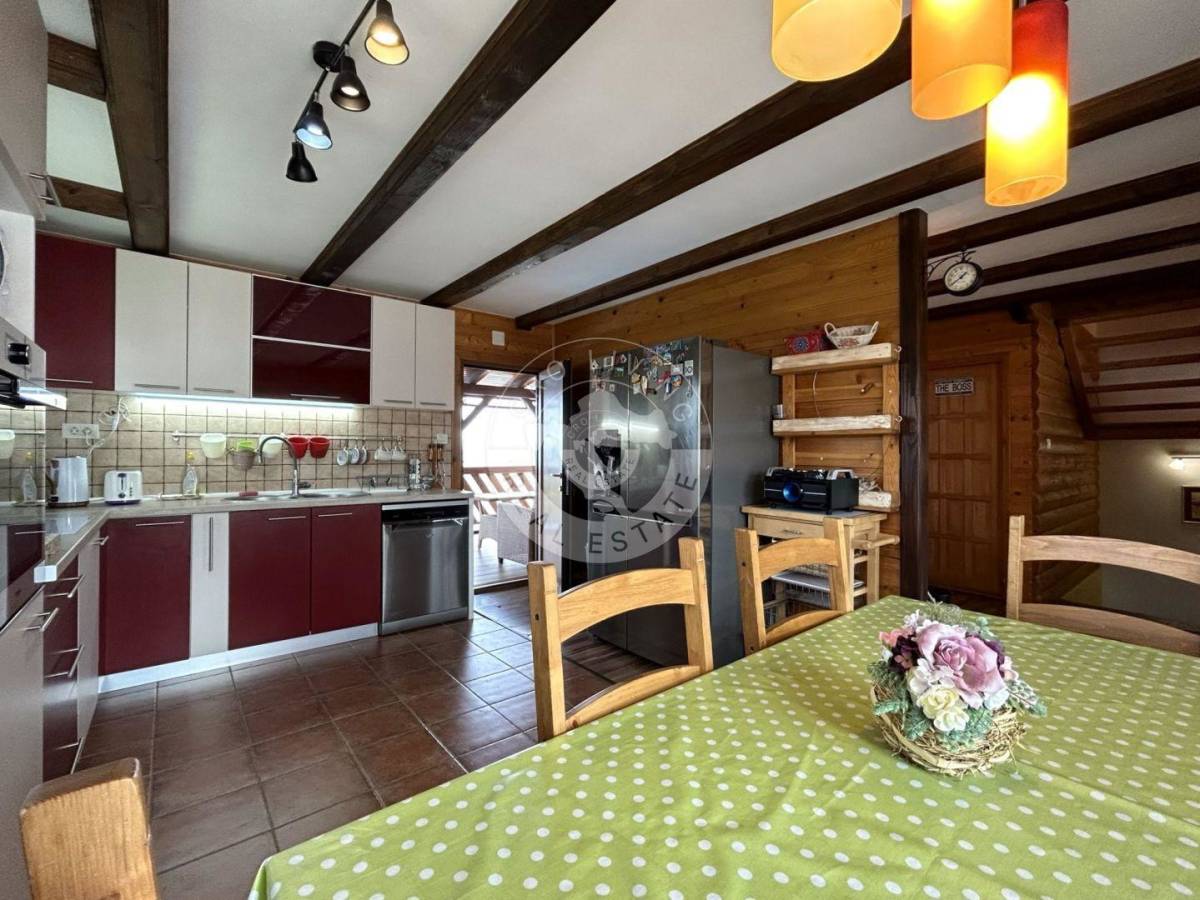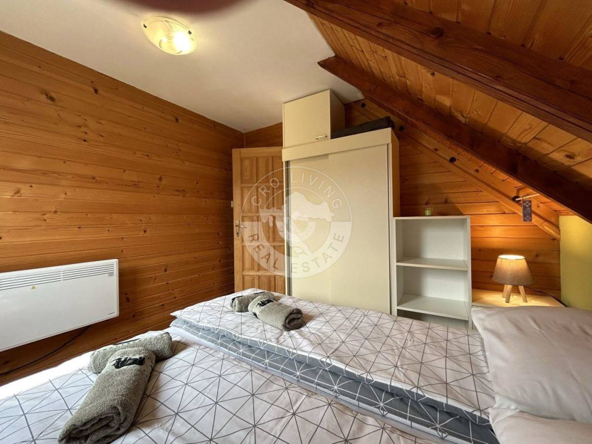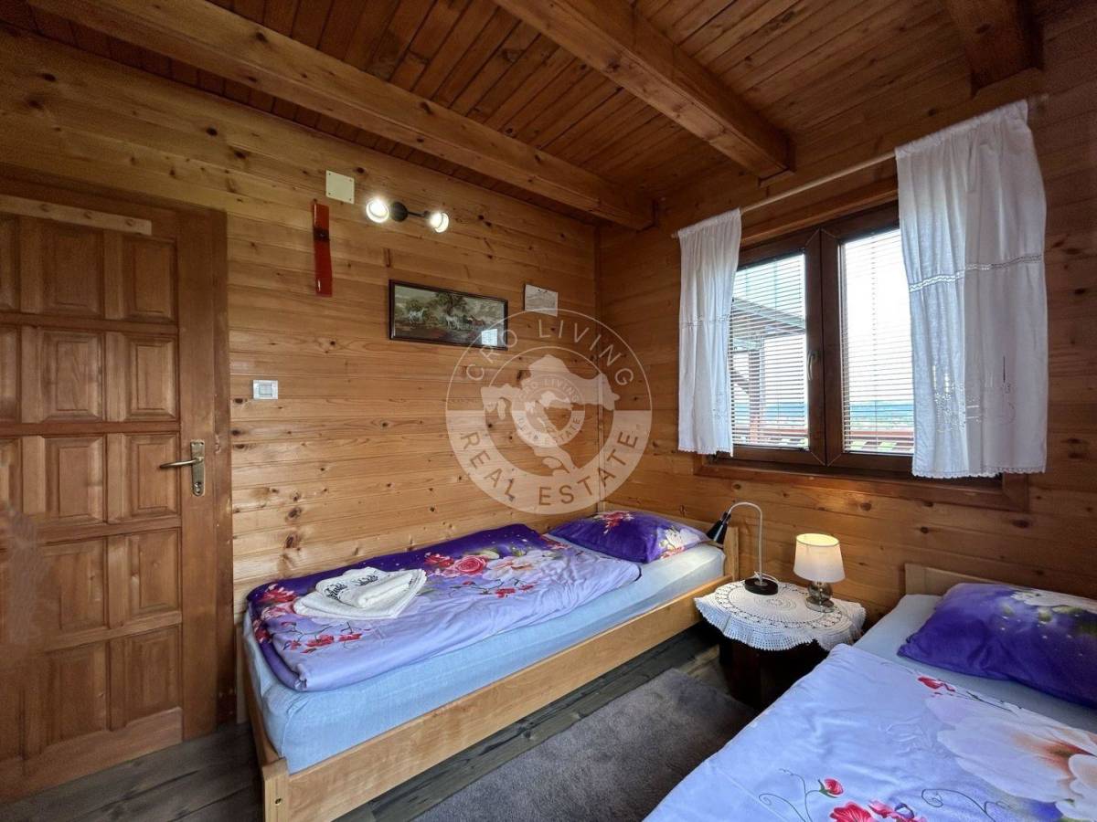 U 97 m2 netto površine drvenog dijela ( 117 m2 brutto ), u prizemlju su se smjestili dnevni boravak, blagovaonica i kuhinja sa izlazom na terasu, kupaonica i jedna spavaća soba, a u potkrovlju predsoblje, kupaonica i dvije spavaće sobe, od kojih jedna ima balkon.