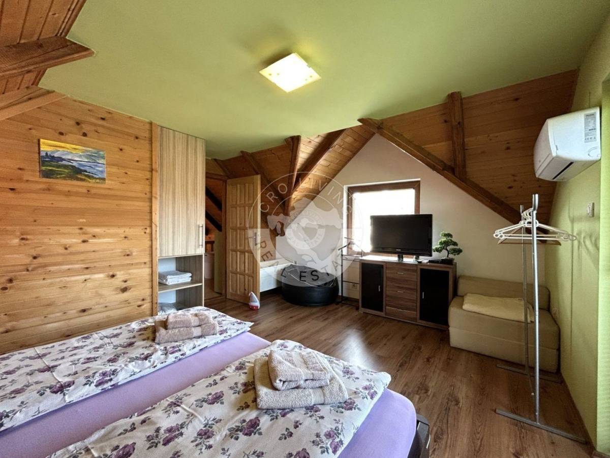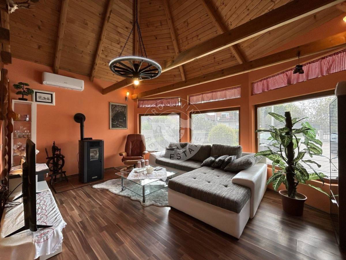 Smještena u blizini Stubičkih toplica i termi Jezerčica, montažna kuća izgrađena je 2008./2009. godine na armirano – betonskim temeljima tlocrtne površine 110 m2.
