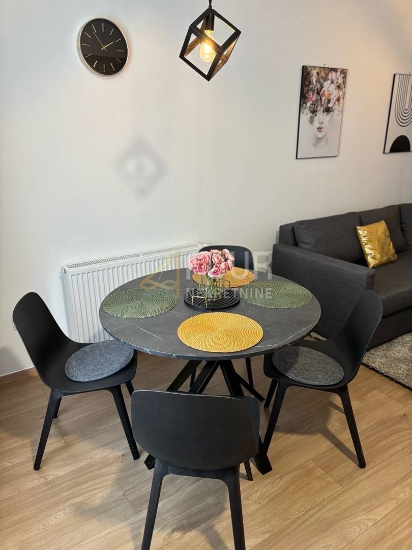 Stan ima ukupnu površinu od 42,96 m2 i sastoji se od ulaznog prostora, otvorenog dnevnog boravka s kuhinjom i blagovaonicom, spavaće sobe iz koje se ulazi u moderno uređenu kupaonicu s tuš kabinom, dok je WC izdvojen kao zasebna prostorija. Orijentacija prema zapadu osigurava obilje prirodnog svjetla i ugodnu atmosferu tijekom cijelog dana.