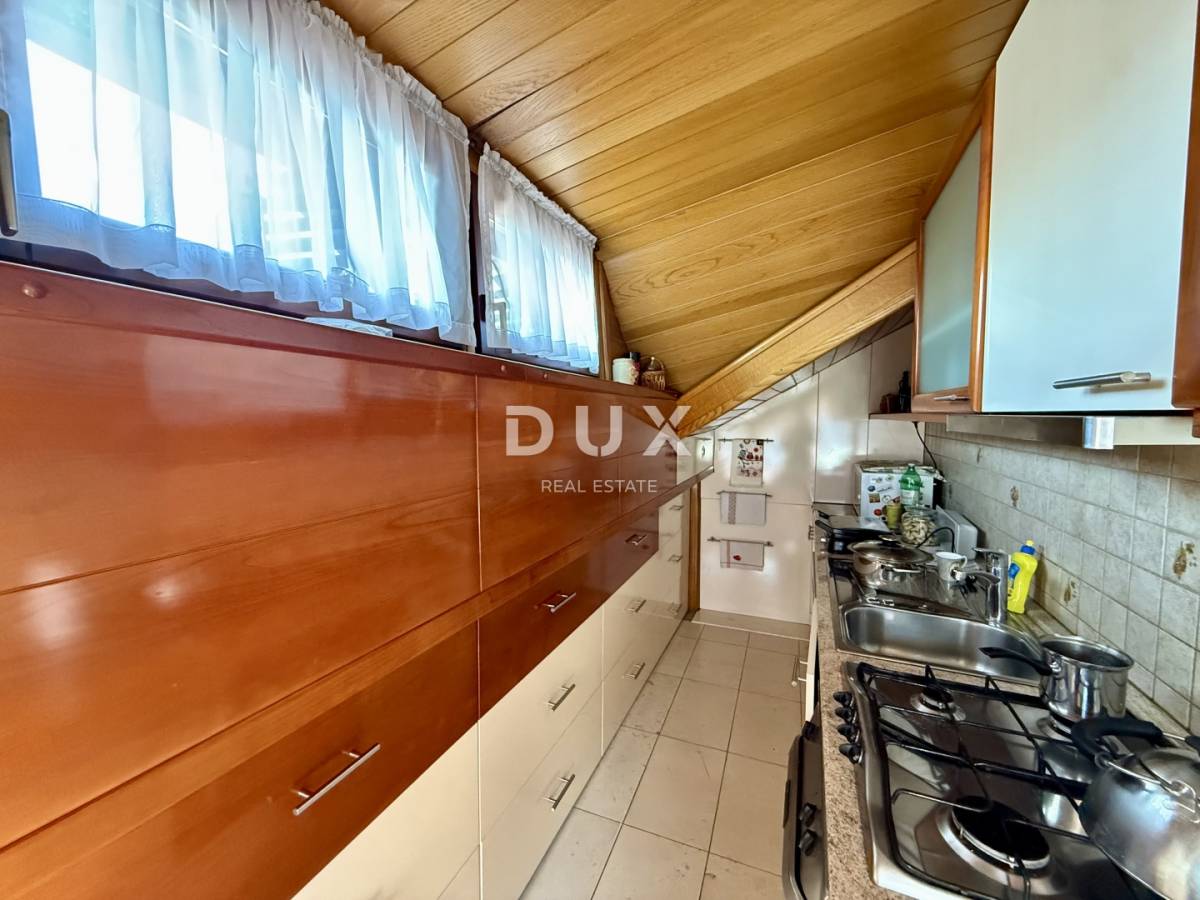 Prvi kat sadrži dvije udobne spavaće sobe, kupaonicu i mali dnevni boravak koji pruža dodatni prostor za opuštanje ili rad. Drugi kat nudi prostran i topao dnevni boravak i blagavaonicu , odvojenu kuhinju te izlaz na veliku terasu, idealnu za druženja, opuštanje i uživanje na otvorenom.