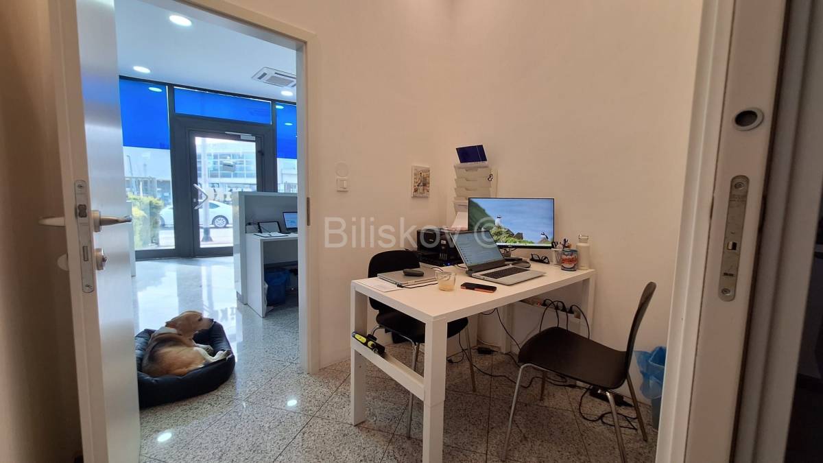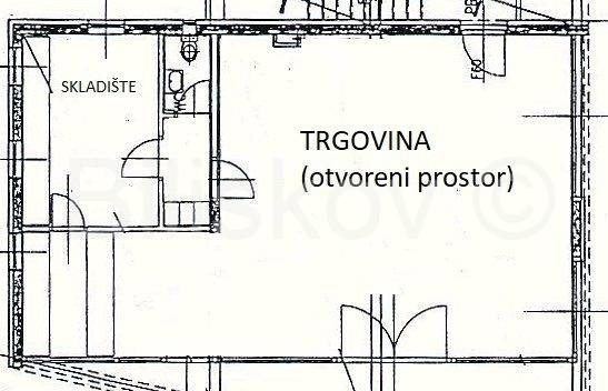 Prostor je okrenut prema uličnoj strani i lako je vidljiv. Sastoji se od velikog otvorenog prostora, skladišnog prostora i wc-a. Sve je uređeno i održavano.