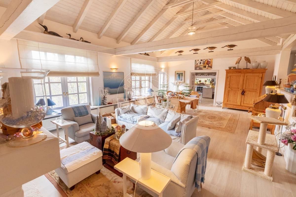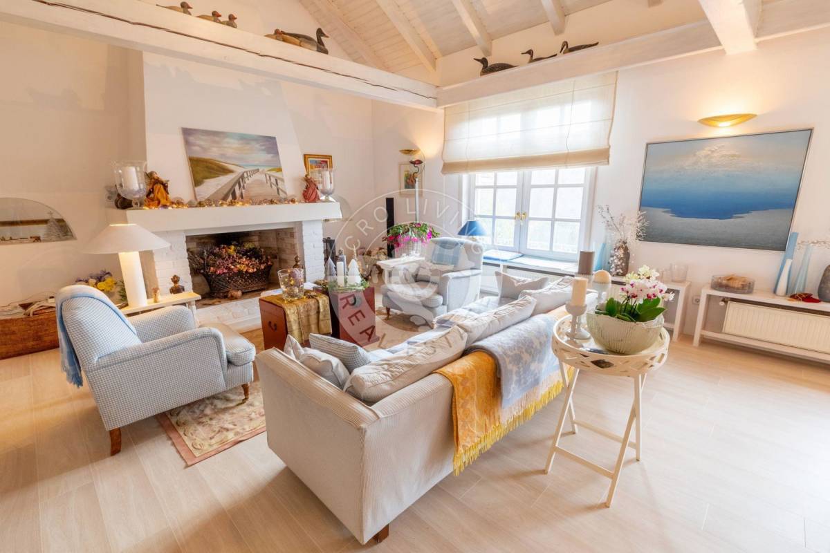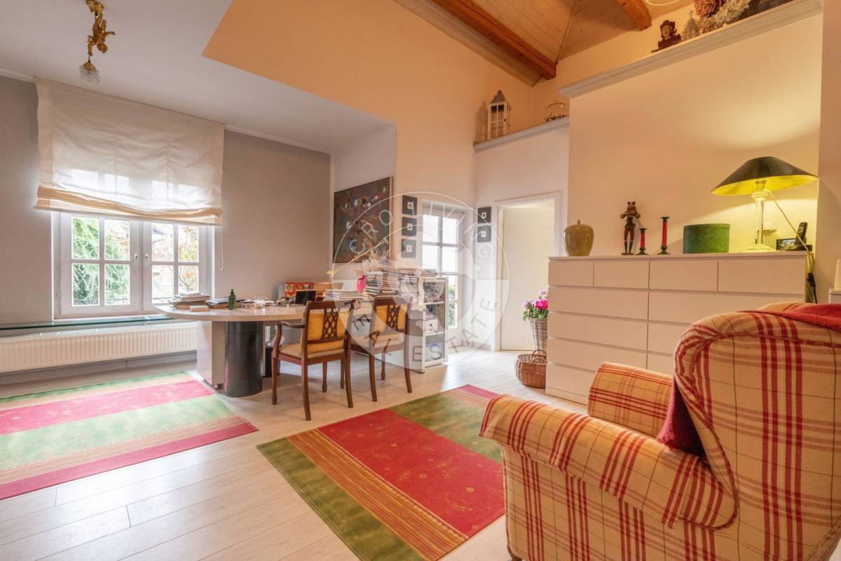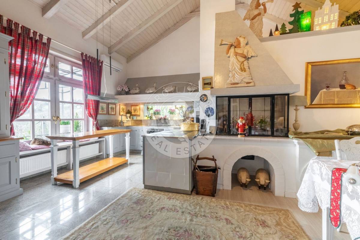 U prizemlju ove impozantne nekretnine prostire se prostrani dnevni boravak obasjan obiljem prirodne svjetlosti uz izlaz na terasu. Visoki stropovi, ukrašeni drvenim gredama, stvaraju svijetlu i prozračnu atmosferu te ističu jedinstvene i atraktivne karakteristike ove građevine, čuvajući njezin šarm i autentični karakter. Kamin, postavljen kao središnji element prostorije, dodatno obogaćuje doživljaj, pružajući toplinu i ugodnost. U prizemlju se dodatno nalazi potpuno opremljena kuhinja s ugodnim kaminom, praktična radna soba, prostorija za opuštanje, spavaća soba s vlastitom kupaonicom, te prostrana glavna spavaća soba koja uključuje luksuznu kupaonicu s kadom i odvojenom tuš kabinom. Ovi dobro osmišljeni prostori pružaju savršenu ravnotežu funkcionalnosti i udobnosti, čineći prizemlje više od samog doma – mjesto gdje se udobnost i stil stapaju u jedinstveno iskustvo življenja.