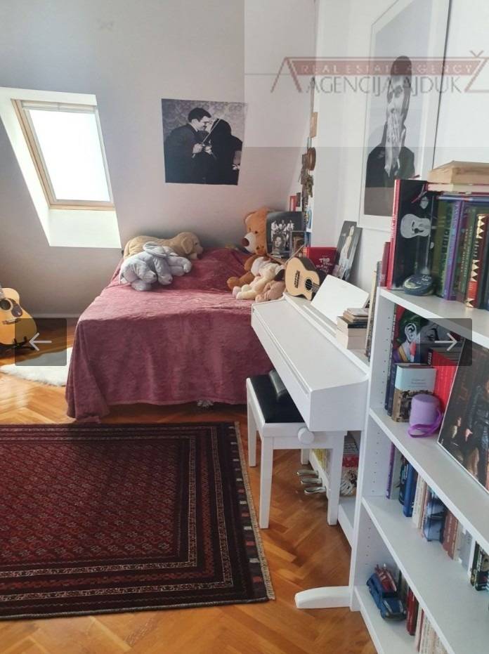Sastoji se od 4 prostrane spavaće sobe, kuhinje, dnevnog boravka, hodnika, ulaznog prostora, dvije kupaonice, garderobe te tri balkona.