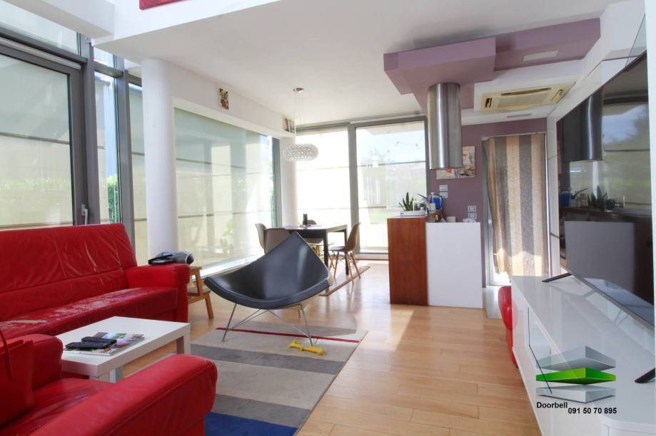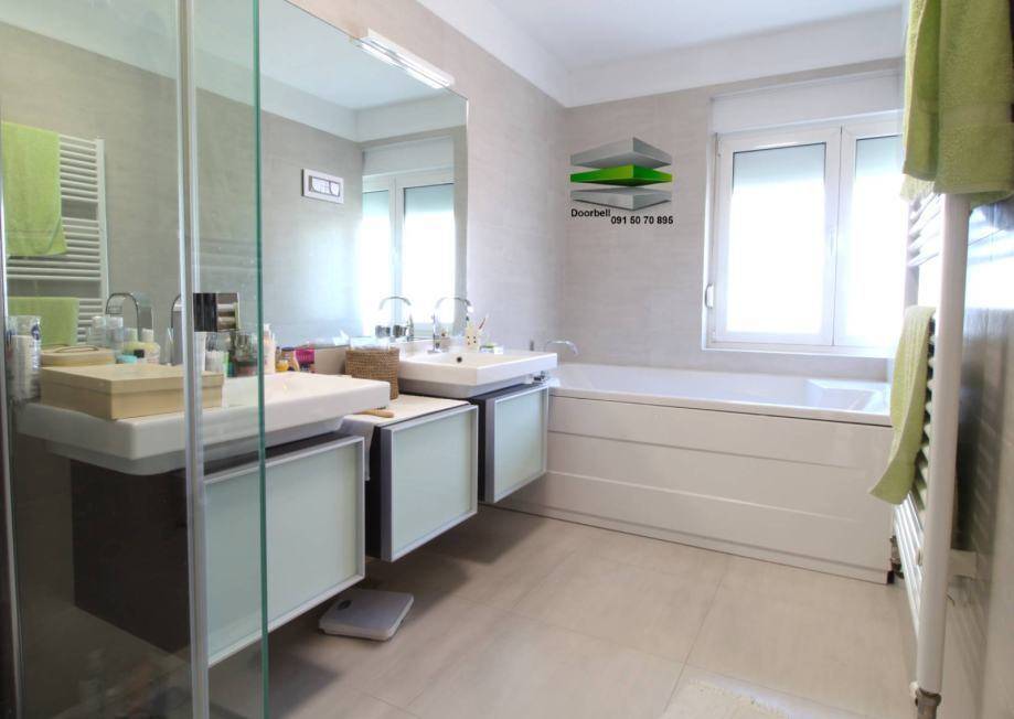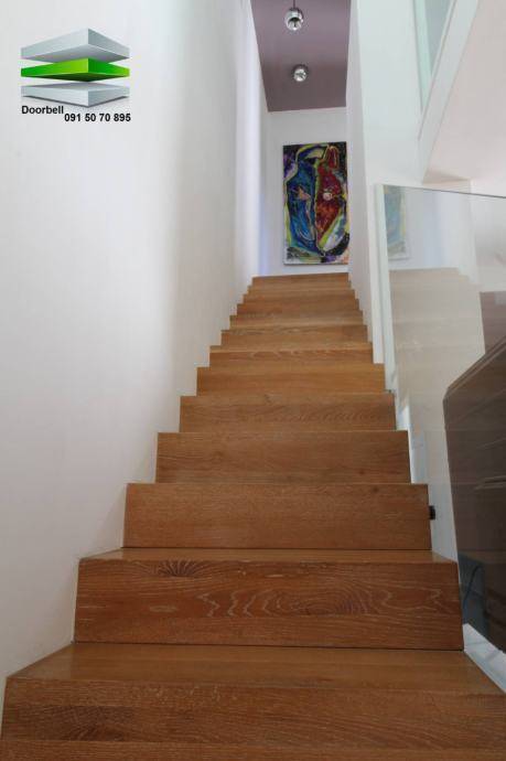 Kuća je vrlo moderno koncipirana na način da se u prizemlju nalazi dnevni boravak s kuhinjom i blagovaonicom iz koje se izlazi na prekrasno uređen vrt koji se nalazi iza kuće, jedna velika soba koje se koristi kao radna te toalet za goste. Na katu su smještene dvije sobe s dvije kupaone, a u potkrovlju su još dvije sobe i kupaona. U podrumu se nalazi kotlovnica te još jedna prostorija koja se može urediti kao wellness prostorija.