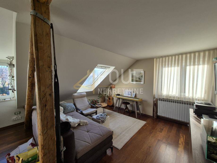 Stanu pripada i tavanski prostor površine 28m2, kao i spremište u dvorištu površine 3.26 m2 (spremište ima struju i nalazi se u razini tla, što ga čini pogodnim za parkiranje manjeg motocikla ili više bicikala).