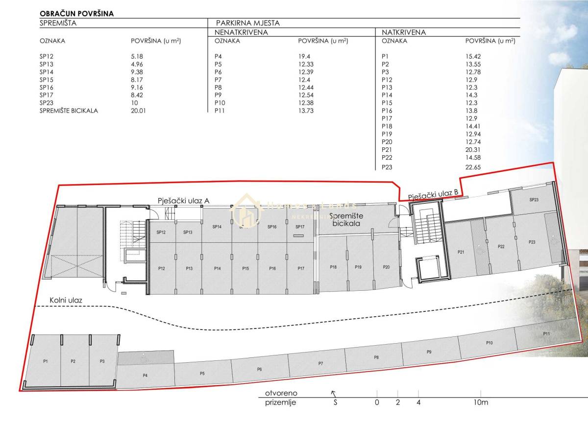 Spremišta: 7 individualnih spremišta i zajedničko spremište za bicikle u prizemlju zgrade.