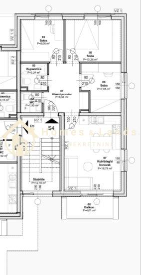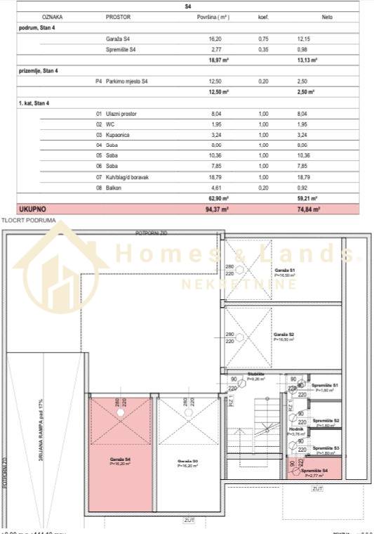 Stan S2 u prizemlju zgrade P4,, obračunske  86,69m2 sastoji se od ulaznog hodnika,kuhinje s blagovaonicom i dnevnog boravka,kupaonice,velike terase,tri komforne spavaće sobe, garaže na -1 etaži ,spremišta te vanjskog parkinga.