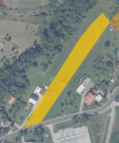 Dalekovod na sredini zemljišta. Građevinsko je ispred (65m) i iza dalekovoda.