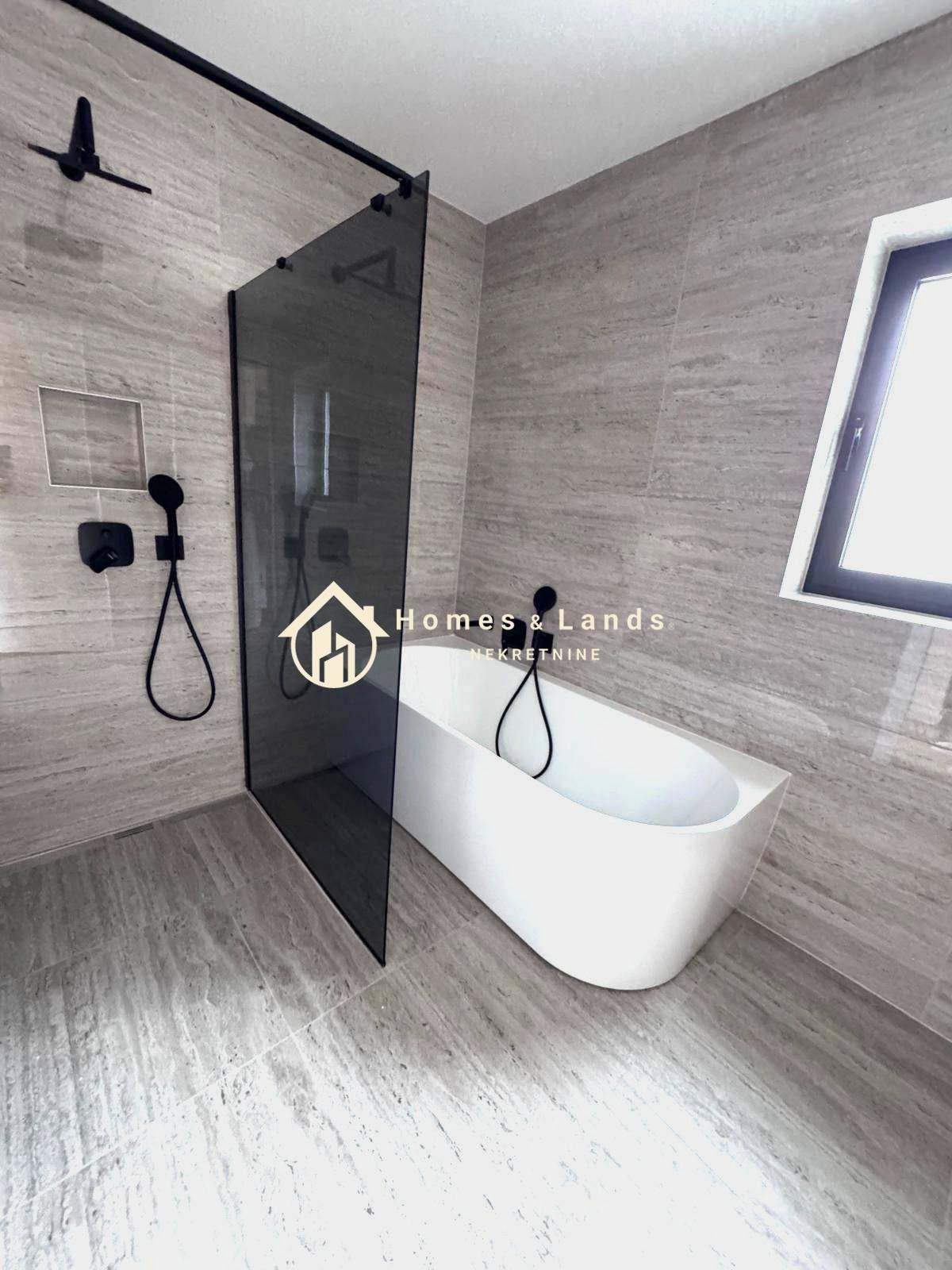 4-soban stan na 1katu zgrade ,obračunske površine 164,36m2 sastoji se od ulaznog hodnika,kuhinje s blagovaonicom, velikog dnevnog boravka, vešeraja, tri velike spavaće sobe, dvije prostrane kupaonice, dvije prostrane terase ukupne površine 37m2 i dva vanjska parkinga.