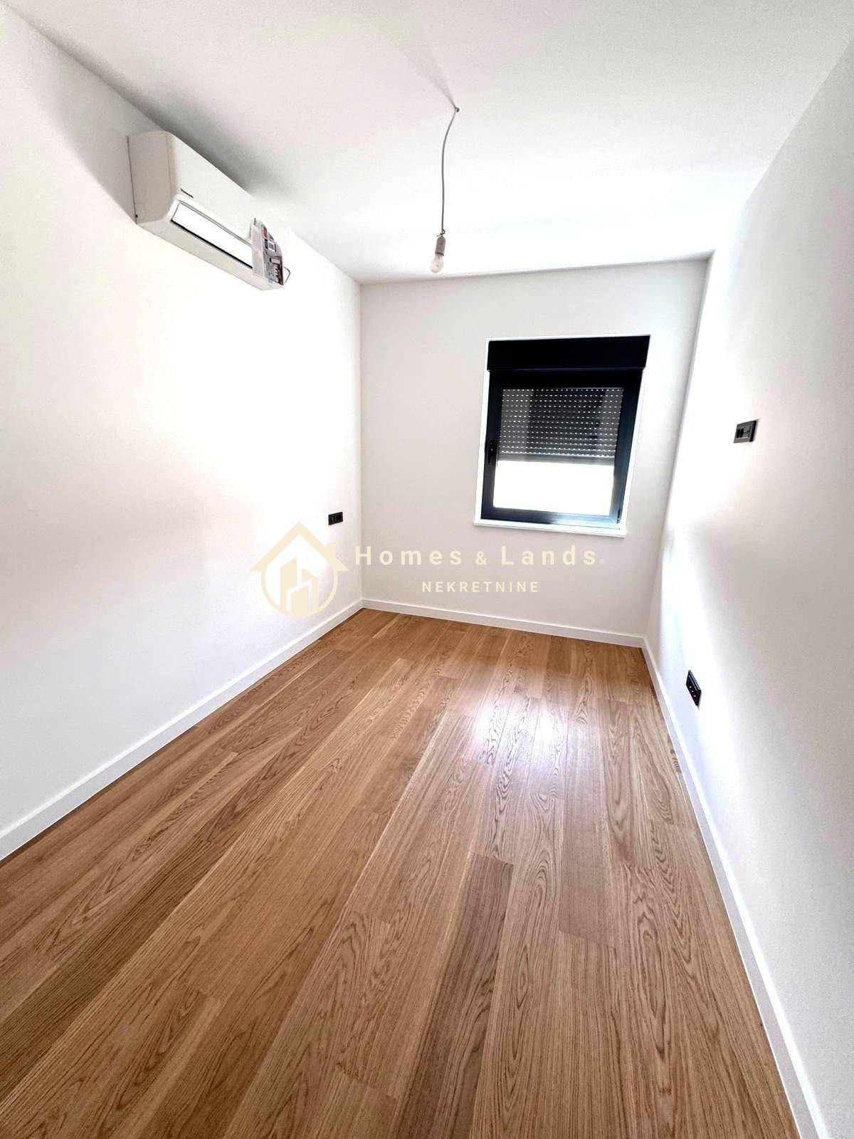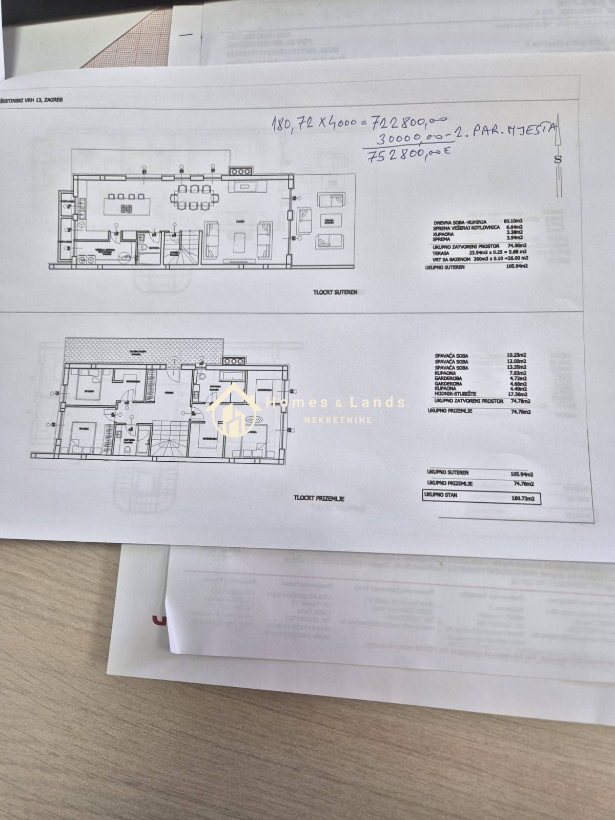 Dvoetažni stan u prizemlju zgrade lijevo ,obračunske površine 180,72m2 sastoji se od ulaznog hodnika,kuhinje s blagovaonicom, velikog dnevnog boravka,vešeraja,kupaonice,terase , velikog vrta 260m2 s vanjskim bazenom,gornjeg dijela s tri velike spavaće sobe s garderobama,tri prostrane kupaonice i hodnika s internim stubištem i dva vanjska parkinga.