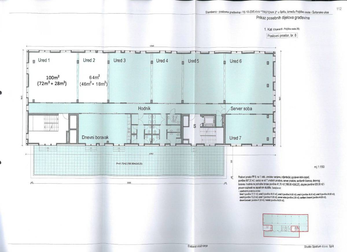 Zakup: poslovni prostor površine 100m2 na prvom katu poslovne zgrade u širem centru grada Splita, Poljička cesta.