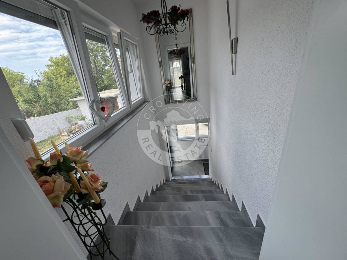 Kuća je samo par minuta ( 5km ) udaljena od Gajnica i prodajnih centara, King Cross, Pevex, Bauhaus, Emezeta, Lesnina...