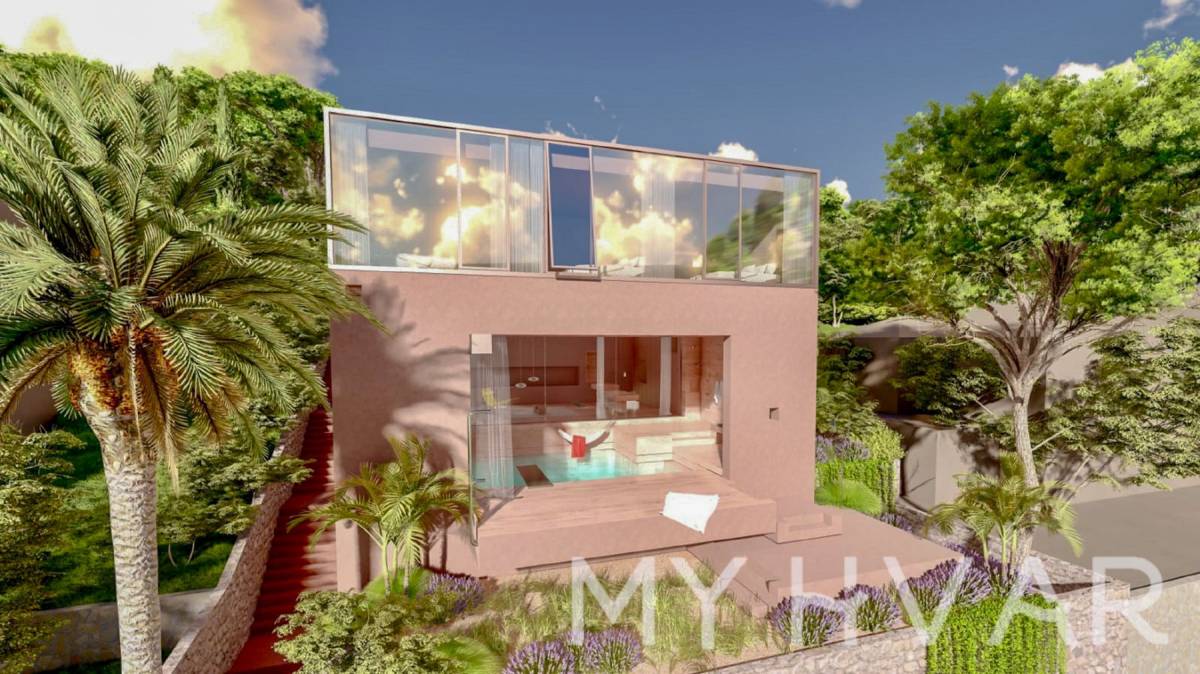 Izuzetno zemljište u Jelsi s projektom vile koji osvaja na prvi pogled! Projektirana vila ističe sve prednosti terena: dominantna pozicija nad Jelsom, blizina centra, pogled na more i južna orijentacija. Vila će imati unutarnji i vanjski bazen, što će joj dati luksuzni šarm. Iza kuće se nalazi veliki dvor s ljetnom kuhinjom, a postoji mogućnost izgradnje još jednog objekta od do 120 m² na dvije etaže.