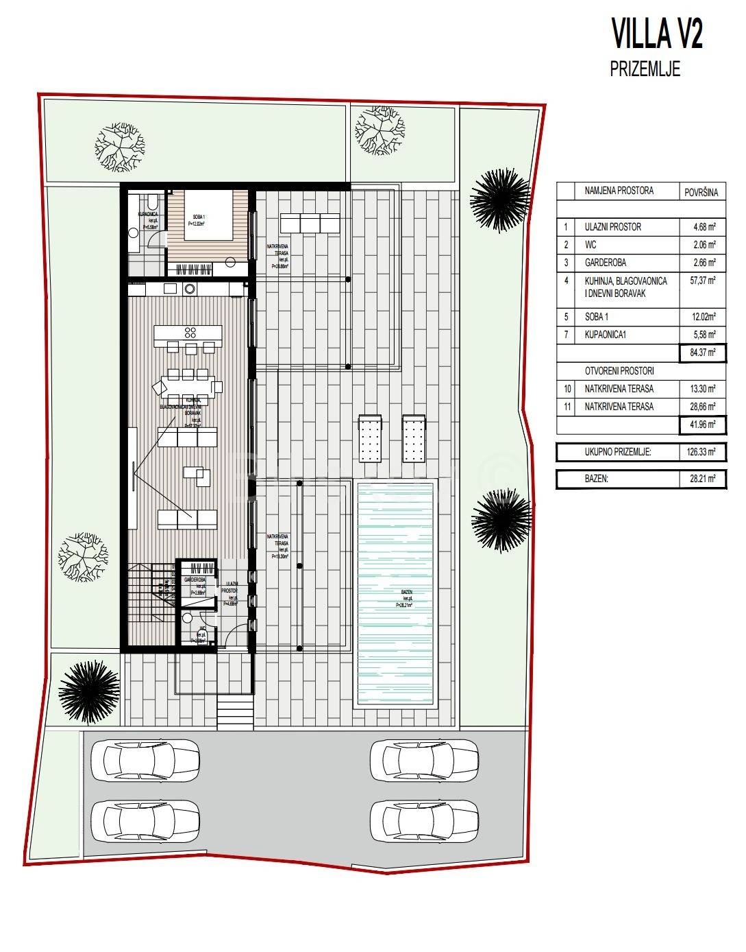 Zemljište nudi dovoljno prostora za udoban raspored objekta, bazena, okućnice, parkirališta te dodatnih sadržaja poput terase, ljetne kuhinje ili wellness zone.
