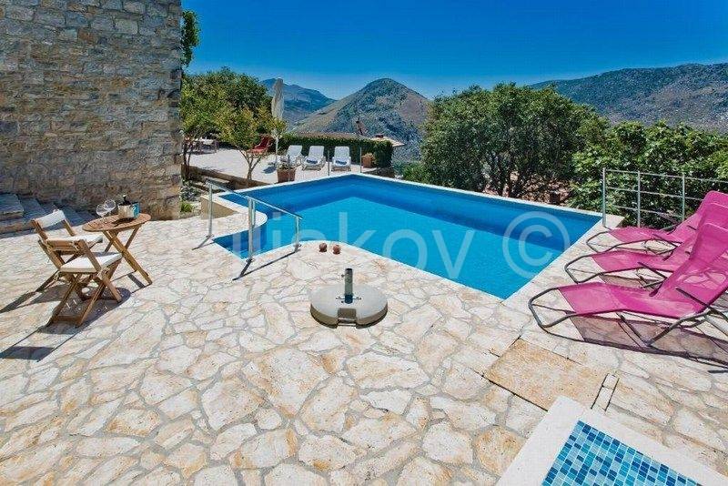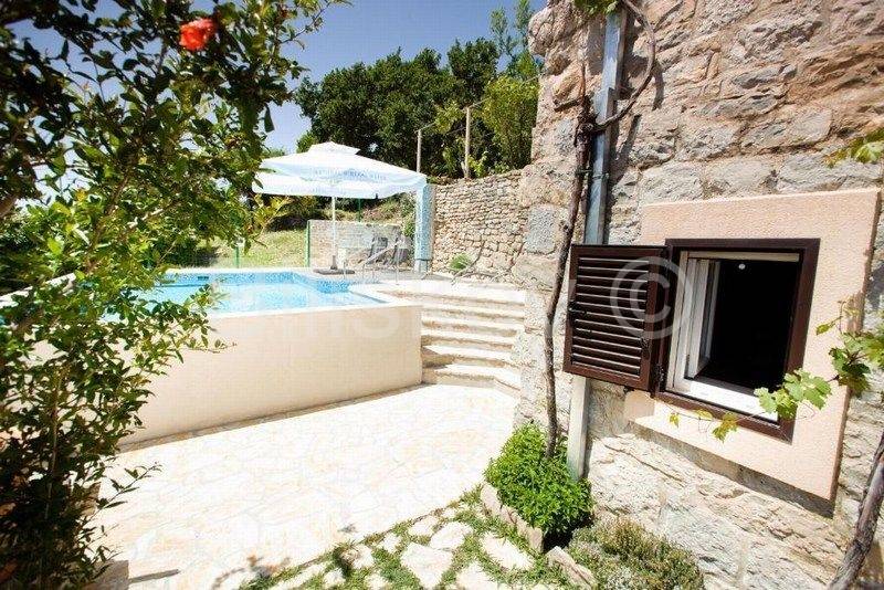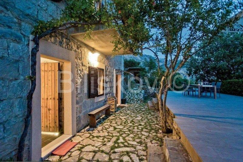 Kultivirana okućnica sjajano je uklopljena u vanjsku vizuru kamene fasade - budi uspomene nekih prošlih vremena, a u kombinaciji sa bezenom i modernim namještajem prati standard modernog uređenja.