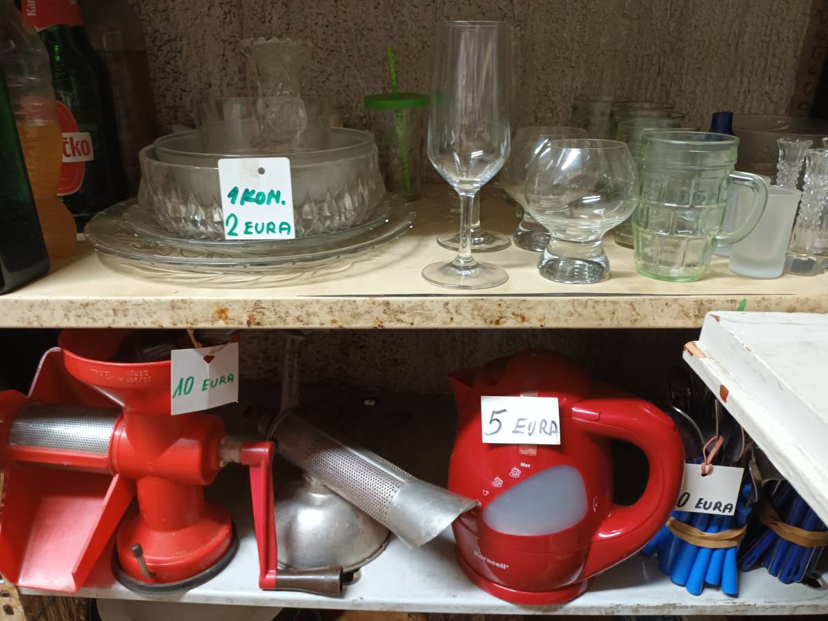 Stakleni tanjuri i zdjele za posluživanje, 2 eura komad. Razno suđe, soljenka, košara za voće. Imam i mašinu za mljevenje mesa sa nastavcima, za pravljene domaćih keksa.