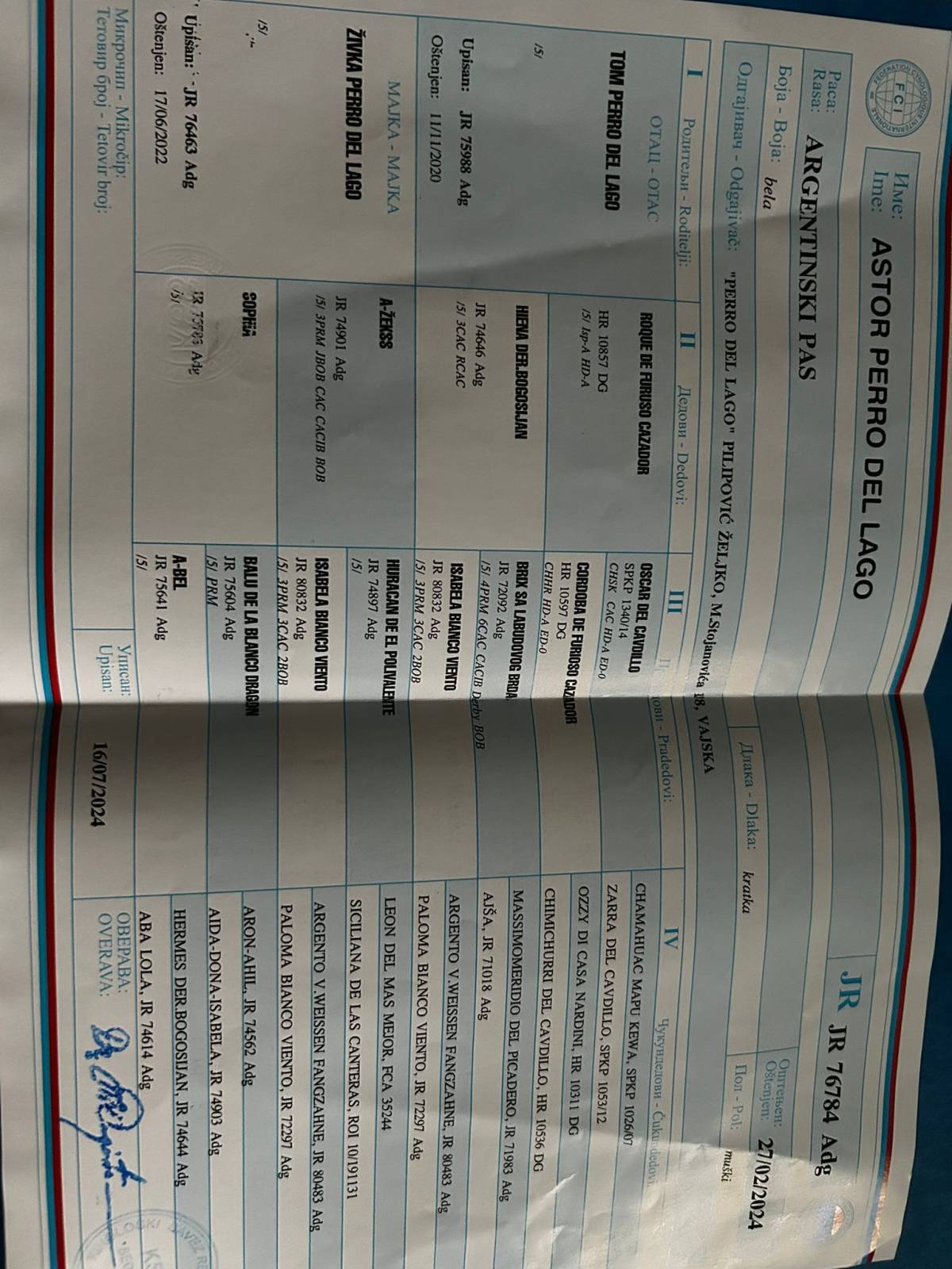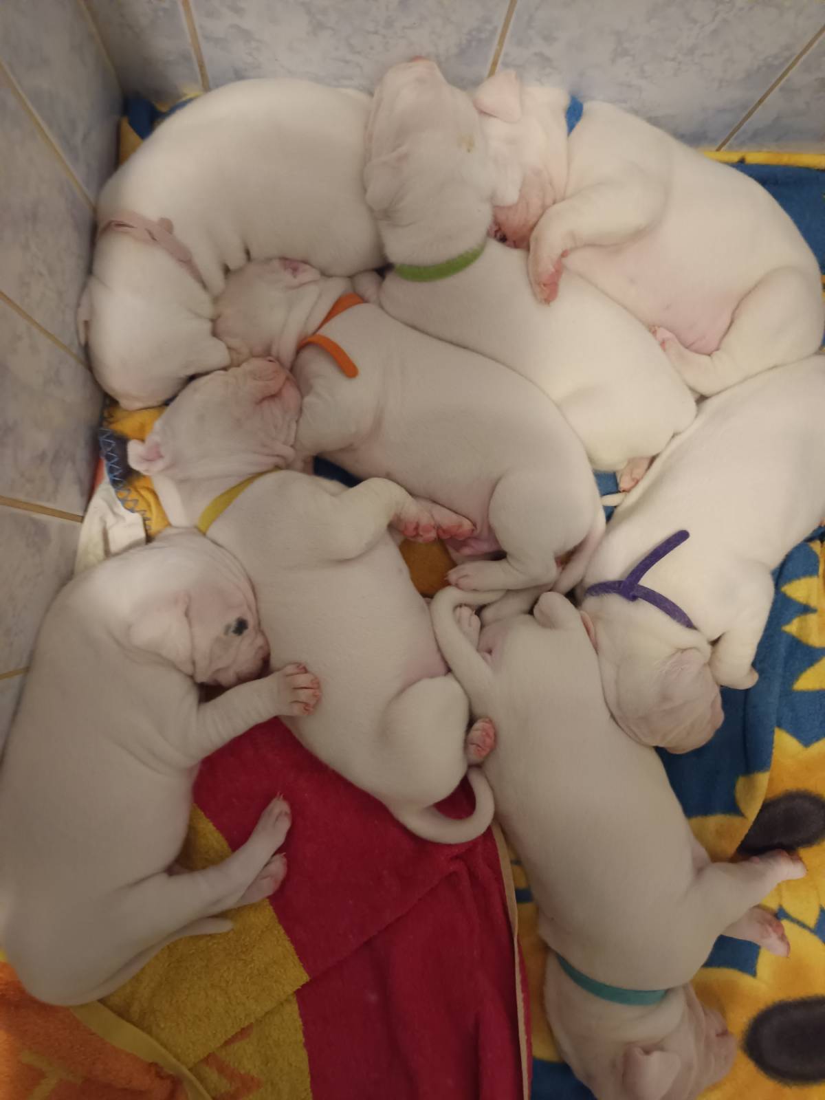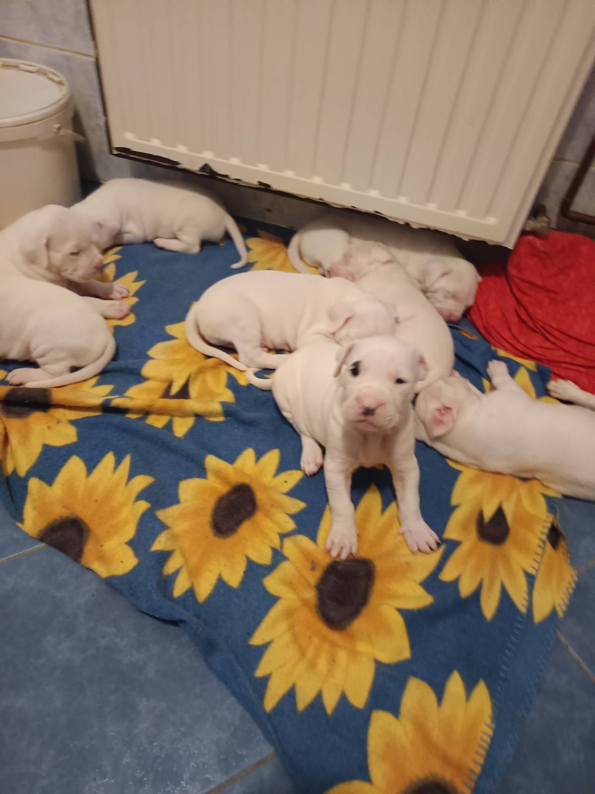 Prodajem čistokrvne štence Dogo Argentino. Oštenjeni 27.10.2025. U prodaji 8 štenaca, 7 mužjaka i 1 ženka. Prvo leglo. Majka starosti 3 godine,a otac 2 godine.