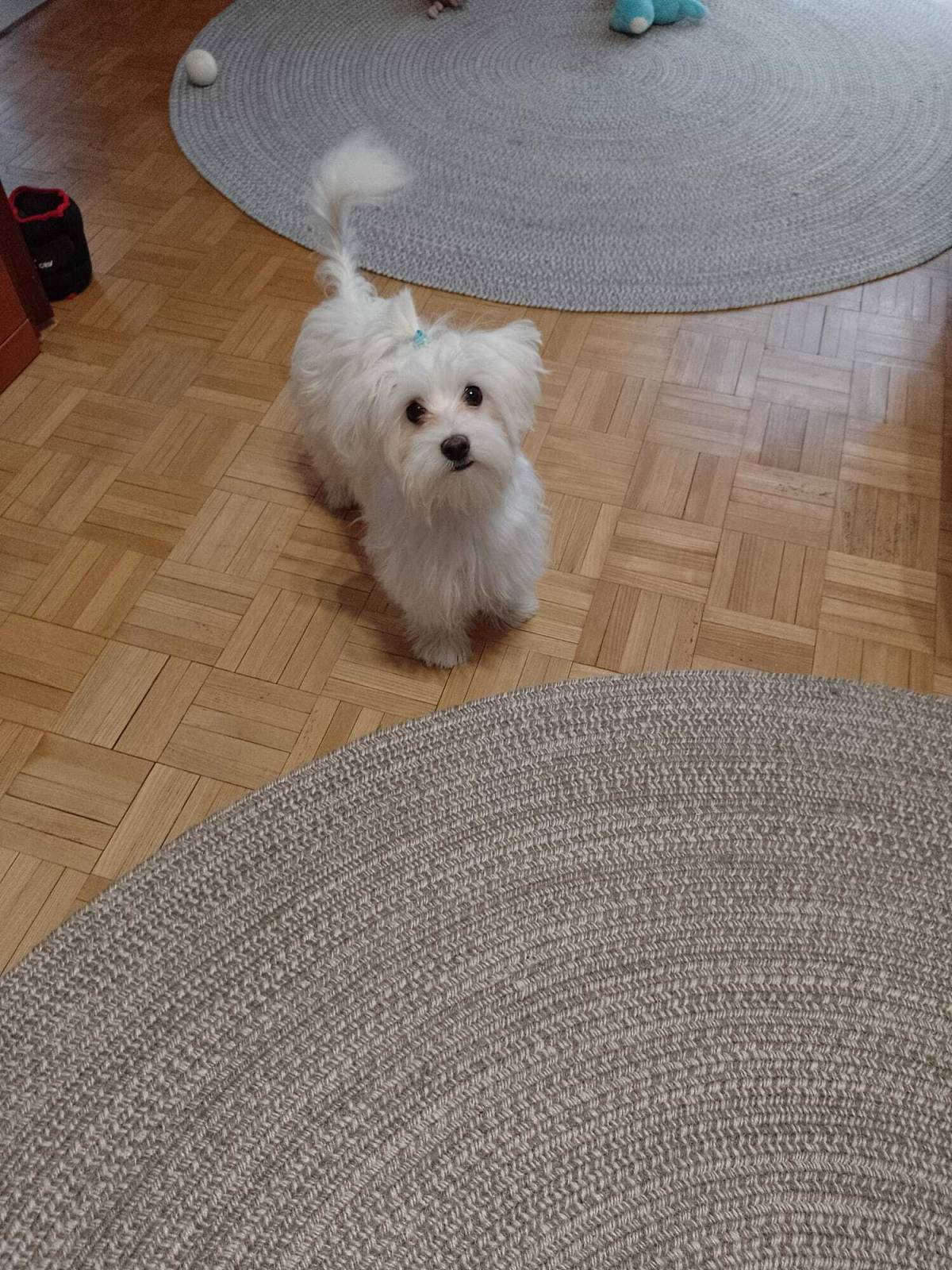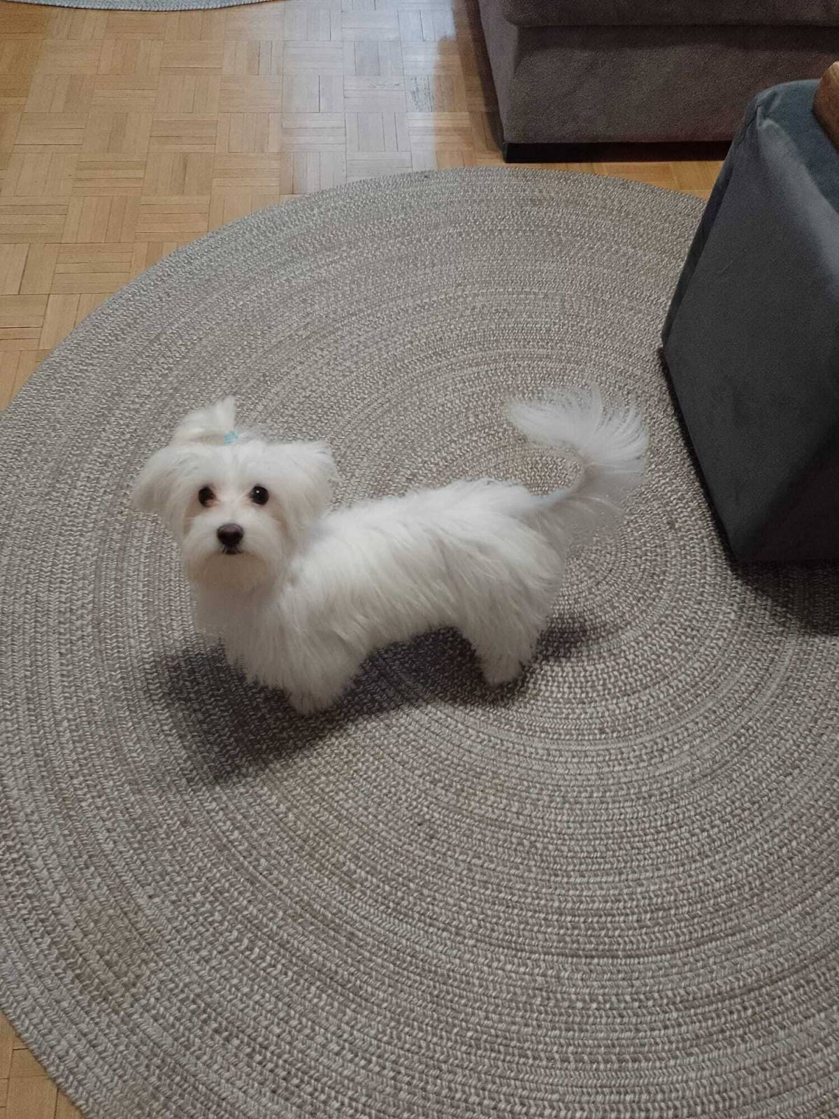Prodaje se mala maltezerica stara 5 mjeseci, teška 2,5kg. Pas je čipiran, više puta očišćen od parazita i cijepljen. Vrlo je vesela, razigrana i izuzetno umiljata. Odlično se slaže sa djecom i drugim psima. Društvena je i ne voli biti sama.