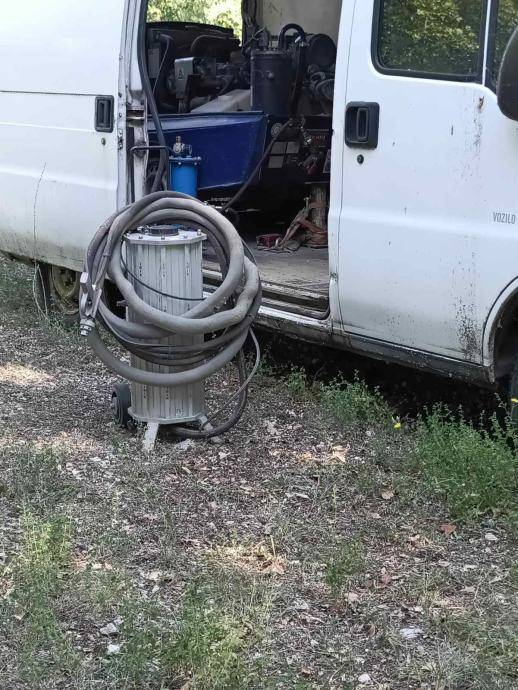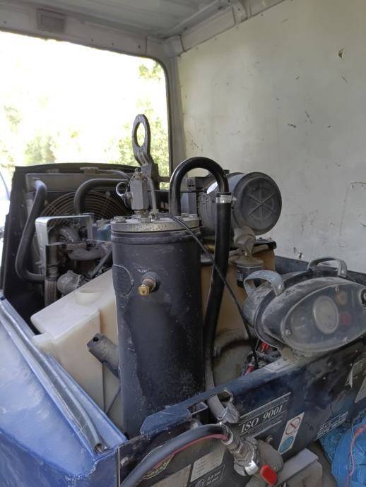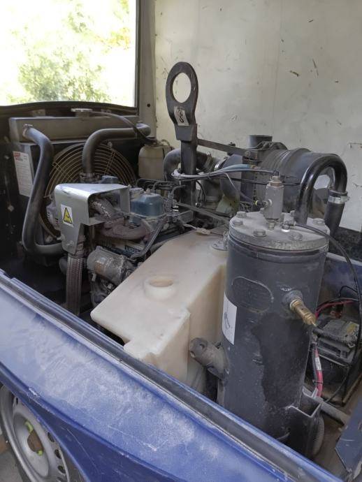 Kompresor ima haubu i rudu, koji su demontirani jer se kompresor nalazi u kombiju.