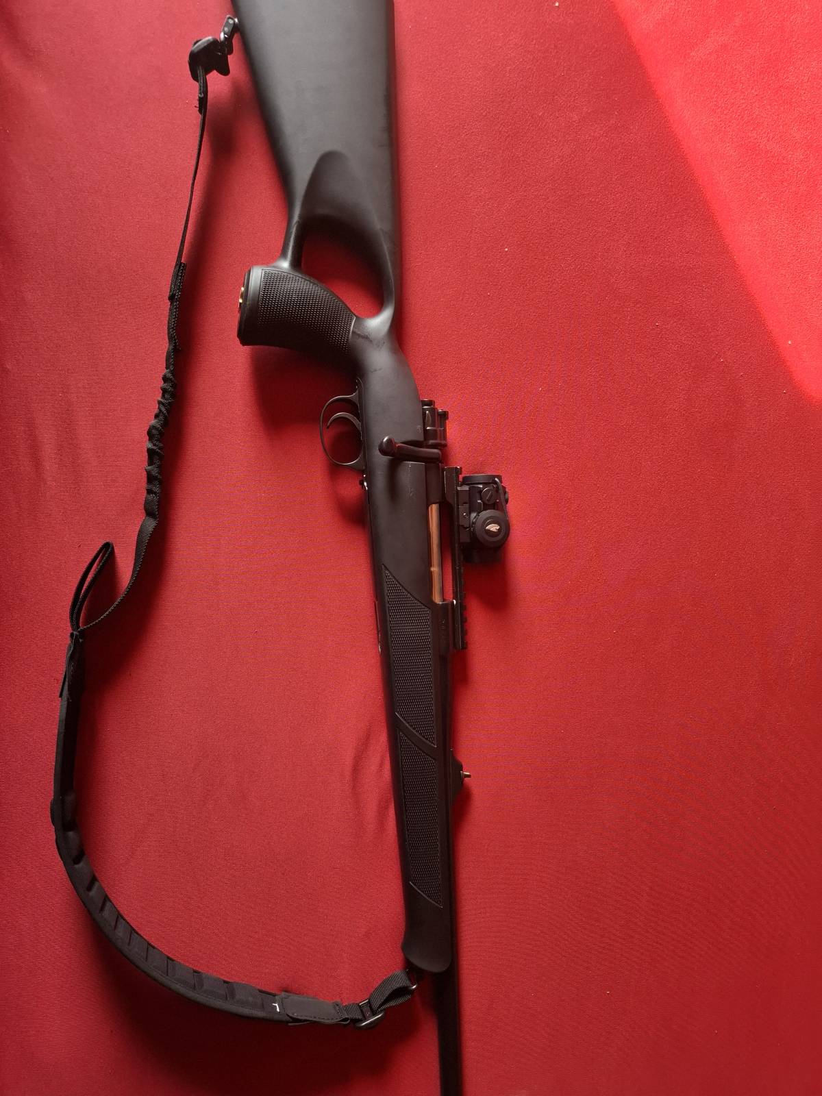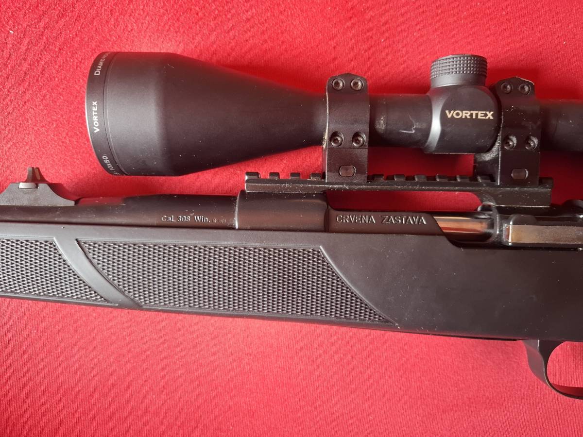 Prodajem karabin crvena zastava u kalibru 308 cijev 56cm mehanički nišani rusanovo okidanje rusan šinja uz njega dajem optiku vortex 3.5-10x50 I drveni kundak na njemu trenutno poliester s pistoljskim rukohvatom moguće isprobati cijena 700e Prodajem isključivo uz nabavnu dozvolu