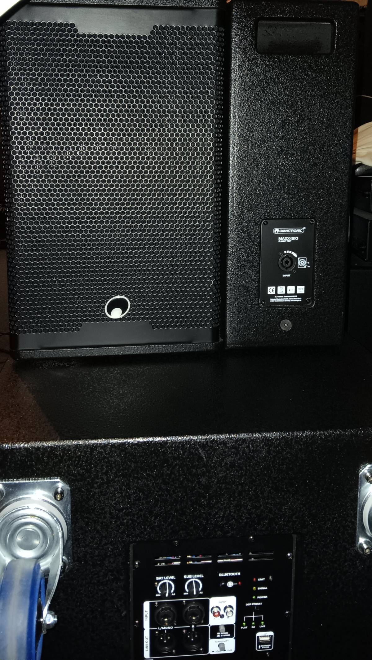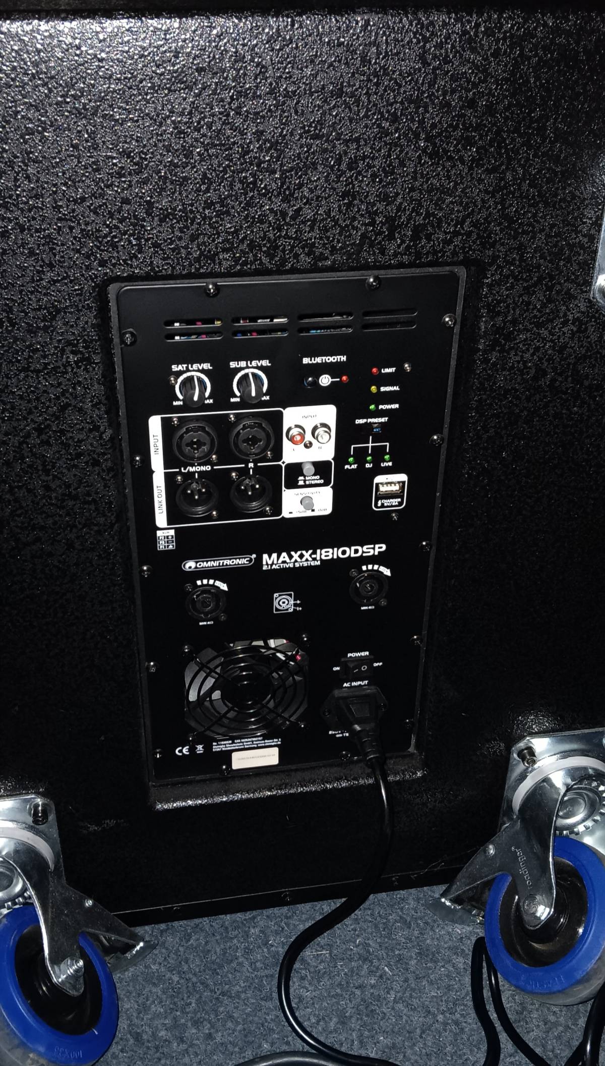 Snaga pojačala: 500 W RMS + 2 x 150 W RMS za dva satelita Služi kao mobilni 2.1 sustav zajedno s MAXX-1810 2-smjernim zvučnicima Balansirani ulaz signala XLR/6,3 mm priključak L/R Dodatni stereo RCA ulaz s prekidačem razine Odvojena kontrola glasnoće za subwoofer i satelite Odabir stereo/mono zvuka Digitalni procesor signala DSP postavke: FLAT; DJ; LIVE Upravljanje putem Bluetootha Crna metalna rešetka s akustičnom pjenom Kotačići opcionalno Za područja primjene kao što su: Mobilna upotreba; mobilni DJ-evi / zabavljači; najam
