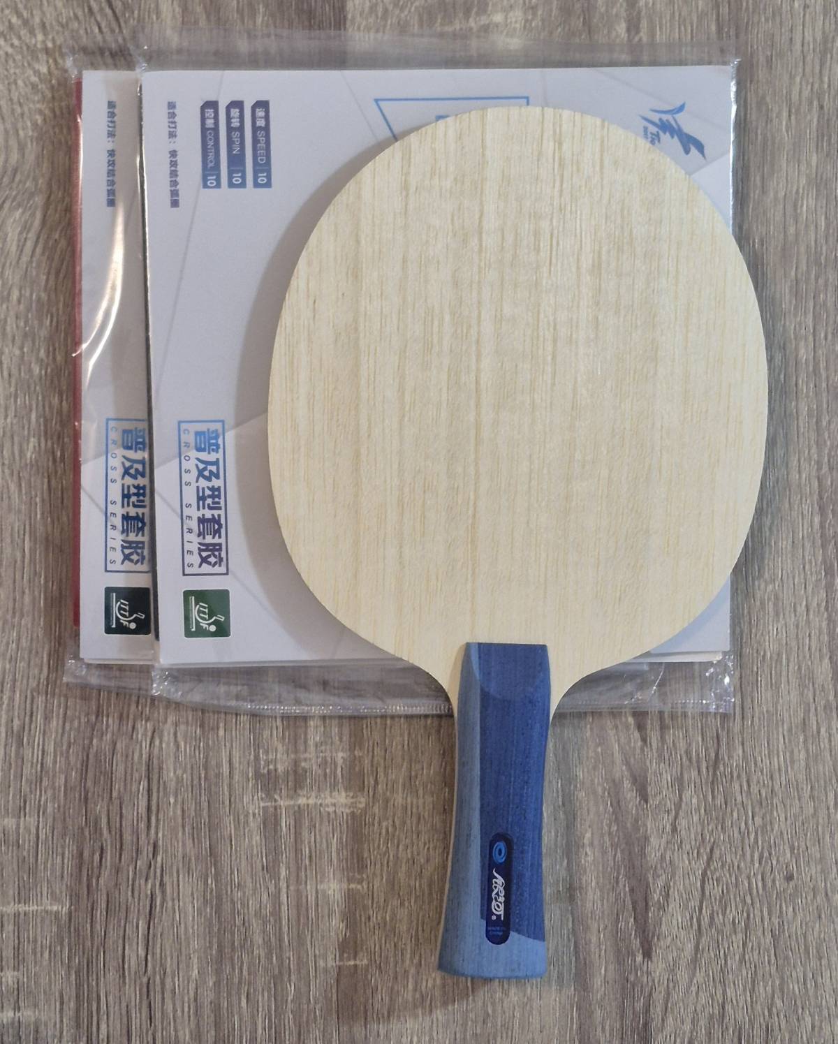 Reket je sastavljen od novog vrhunskog super ALC drveta koje teži oko 90 grama i dvije nove kineske ofenzivne natjecateljske gume.