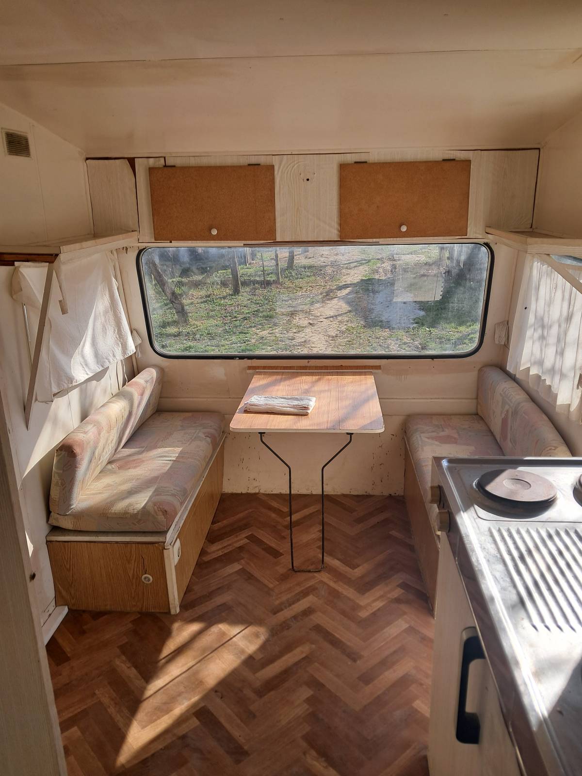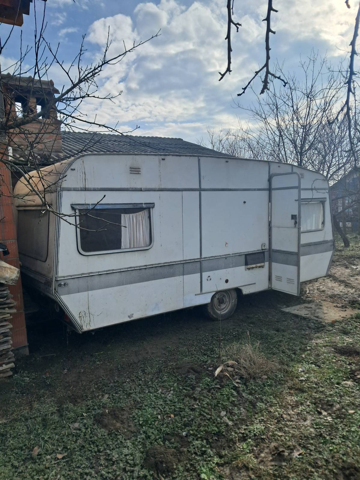 Prodaje se ili mjenja kamp- prikolica bez papira u dobrom stanju, ne prokisnjava frizider,el sporet svjetla sve radi ako se spoji na agregat ili nornalnu struju, dva kreveta bez madraca, pogodna za vocnjak ili vrt, moze zamjena za traktor imt 533 u toj cijeni