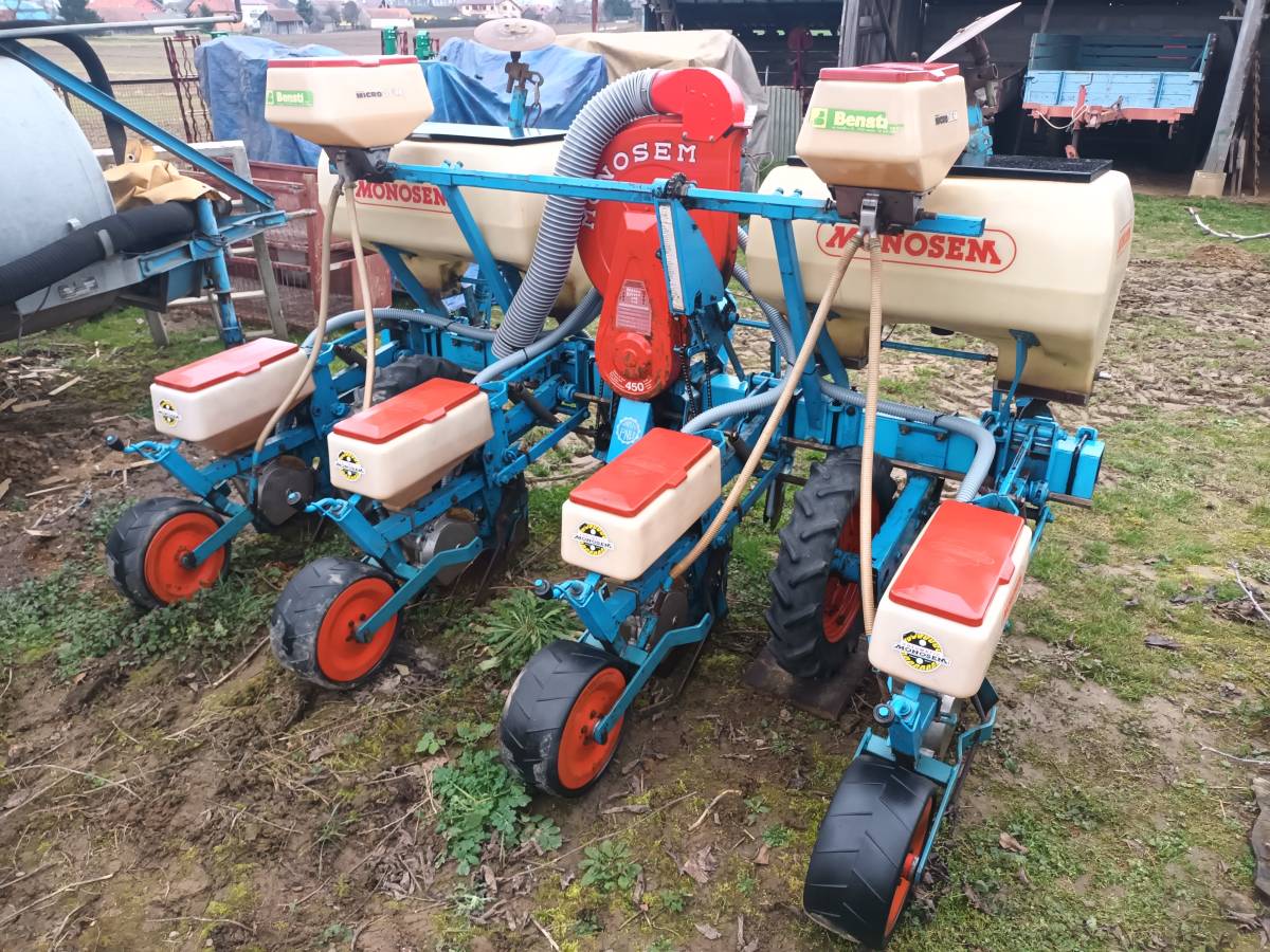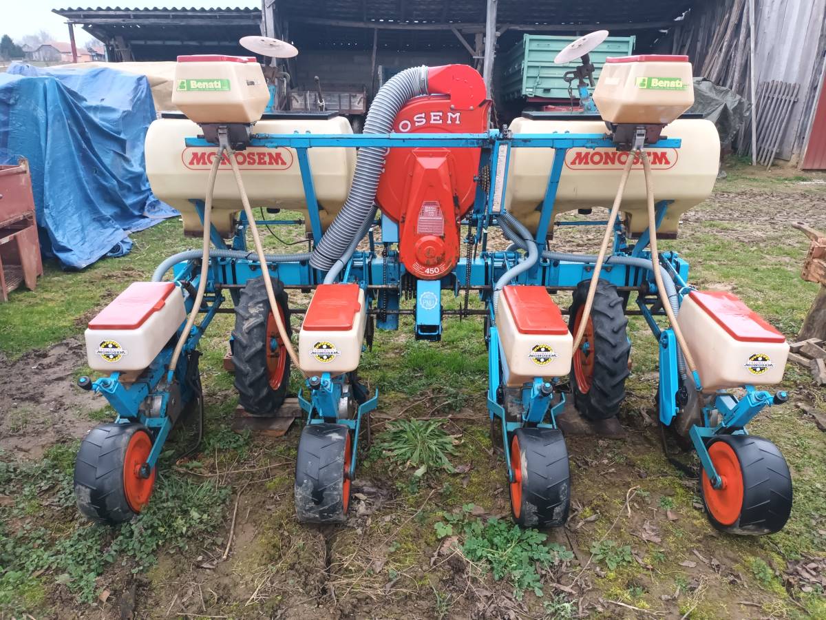 Prodaje se pneumatska sijačica za kukuruz MONOSEM 4 reda, gumeni široki nagazni kotači, plastične kutije za gnojivo i sjeme, kutije za mikrogranule, automatski markiri diskovi, nova crijeva, razgrtači busena, odvod nečistog zraka iz turbine, sadilica je u super stanju. Zvati na: 097/733-7199