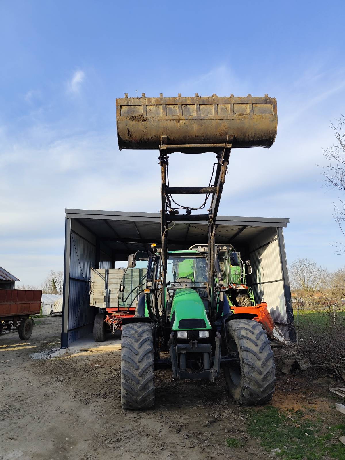 Traktor ima prednji utovarivač, prednji hidraulike, 4 brzine kardana, super spore brzine, klimu, zrak nema.